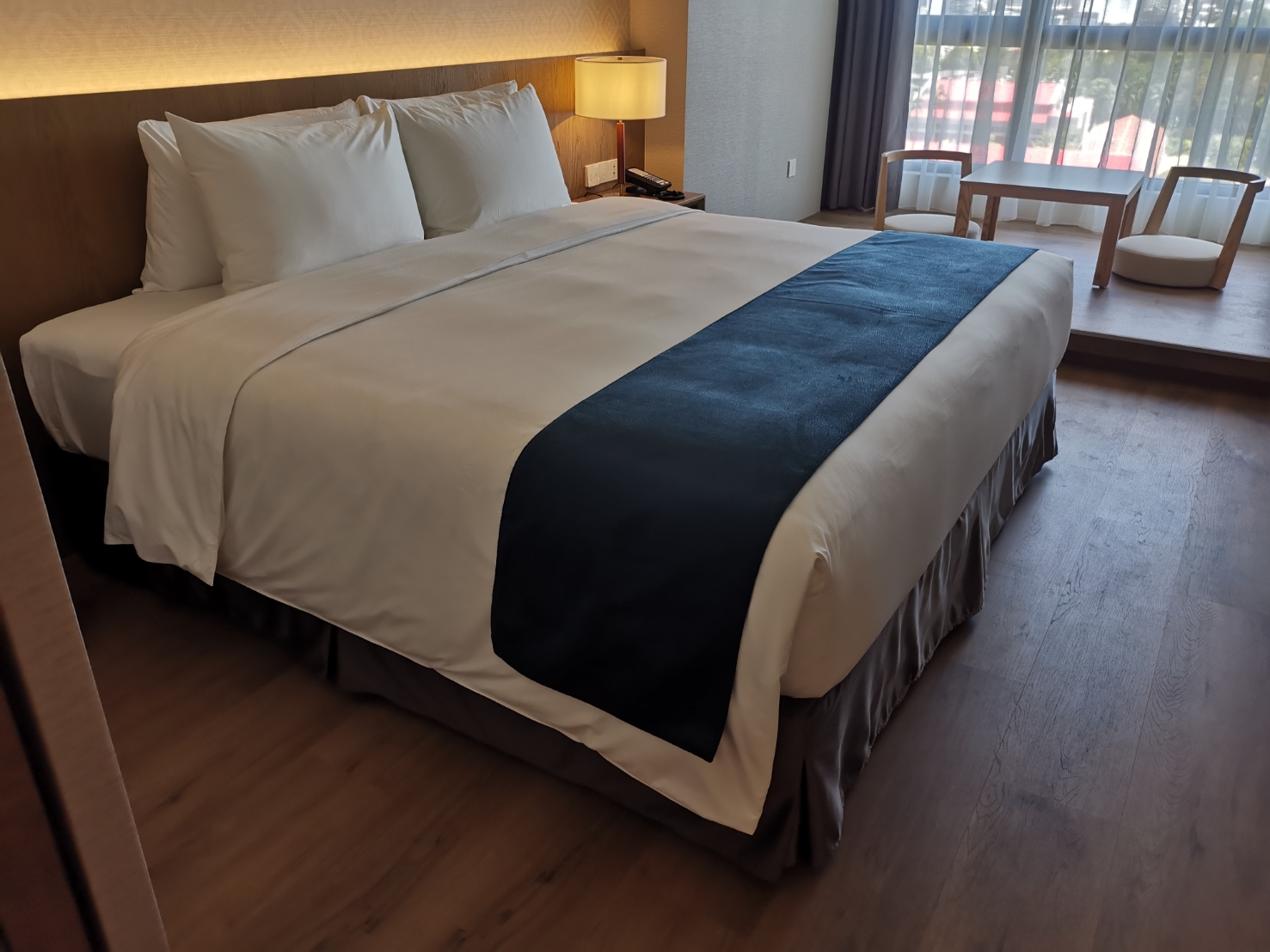 、尊爵套房等七種房型共180間套房,一、二樓還設有中餐廳、酒吧、宴會廳。頂樓有健身房及高空花園游泳池與親子戲水池,天晴時能遠眺半屏山景,夜晚則星光點點與水中燈光相呼應,搭配蒲葵樹影搖曳,裸色遮陽傘與躺椅,頗可體會時髦的渡假感,也是絕佳的網美拍照打卡景點