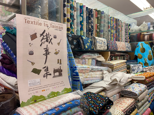 紡織對臺南發展史佔有非常重要的一頁,許多臺南人的成長記憶中都有成衣加工與布料,像黃宥琳設計師,從小生長在媽媽每天腳踩縫紉機製作與修改衣服的環境裡,耳濡目染之下自己也走上織品手作設計這一行。「織事集」市集活動,齊聲響應的單位包含數年來參與社造計畫的文南里夥伴、華昌拉鍊、明林蕾絲、新玫瑰布料、雅逢布業、誠佳科紡、震隆金屬鈕扣製品、穩泰線行等布料與輔料(紡織零件)單位,以及設計品牌Hsiu創意手工繡花鞋、衫築、蒔和造物、濤人絹印手做、碰器工作室、iLife手感設計、DUAL手工皮包設計、巧婦織布工藝工作室等,工研院並展出以回收蚵殼製成的蚵紡布料成果。各攤位也發揮巧思推出七項手作體驗,每天消費與參加手作金額滿三百元的前五十位名眾可折抵一百元優惠,心意滿滿的貼心規劃都是為了推廣臺南紡織織事。