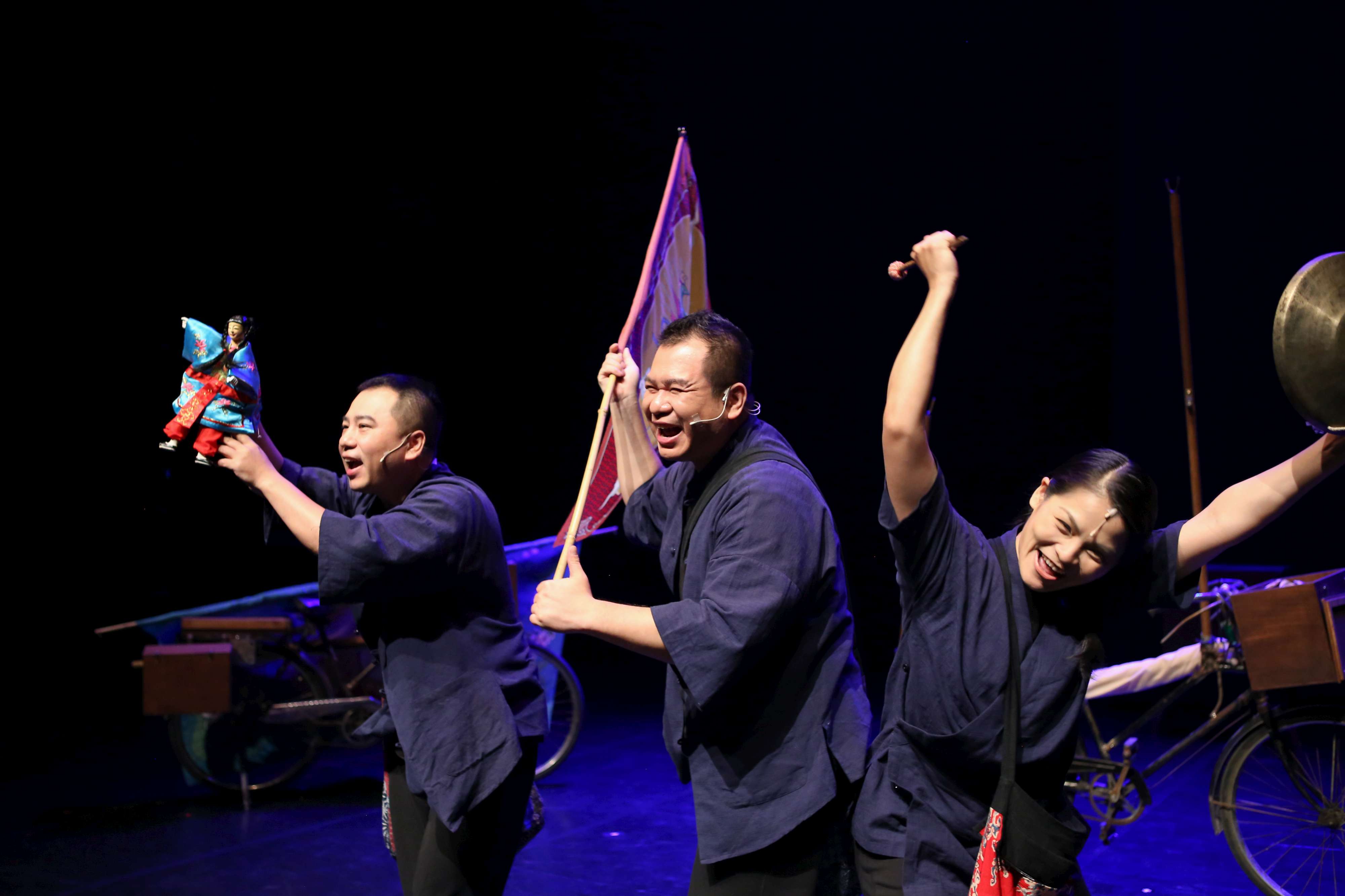 劇中採用戲中戲的方式,以腳踏車作為布袋戲舞台的媒介,藉由兩台腳踏車與廣告布旗的排列組合的視覺概念,創造出豐富的空間場域。舞台上的江湖,不僅是布袋戲班在巷街廟口的勞動生活,也同時是水滸世界裡的各式江湖;除了有布袋戲人物的存在,也呈現出演師們後台的現實狀態。打破大眾對布袋戲演出的既定印象以及視覺,展現「傳統新藝」的布袋戲新面貌。