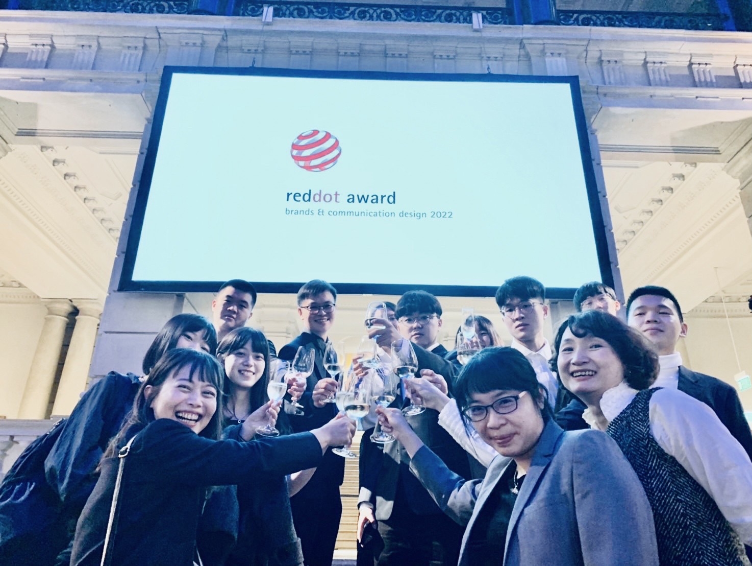 本校獲獎同學及指導老師,一起舉杯慶祝許喬斐主任表示,這段路行之不易,師生們對於作品的認真與堅持,在國際級的設計競賽中能獲得肯定,就是最大的鼓勵。同時也感謝學校董事會、校長的支持,讓師生能有機會親臨現場、感受設計界的盛事,並與來自世界各地的優秀設計師進行交流。