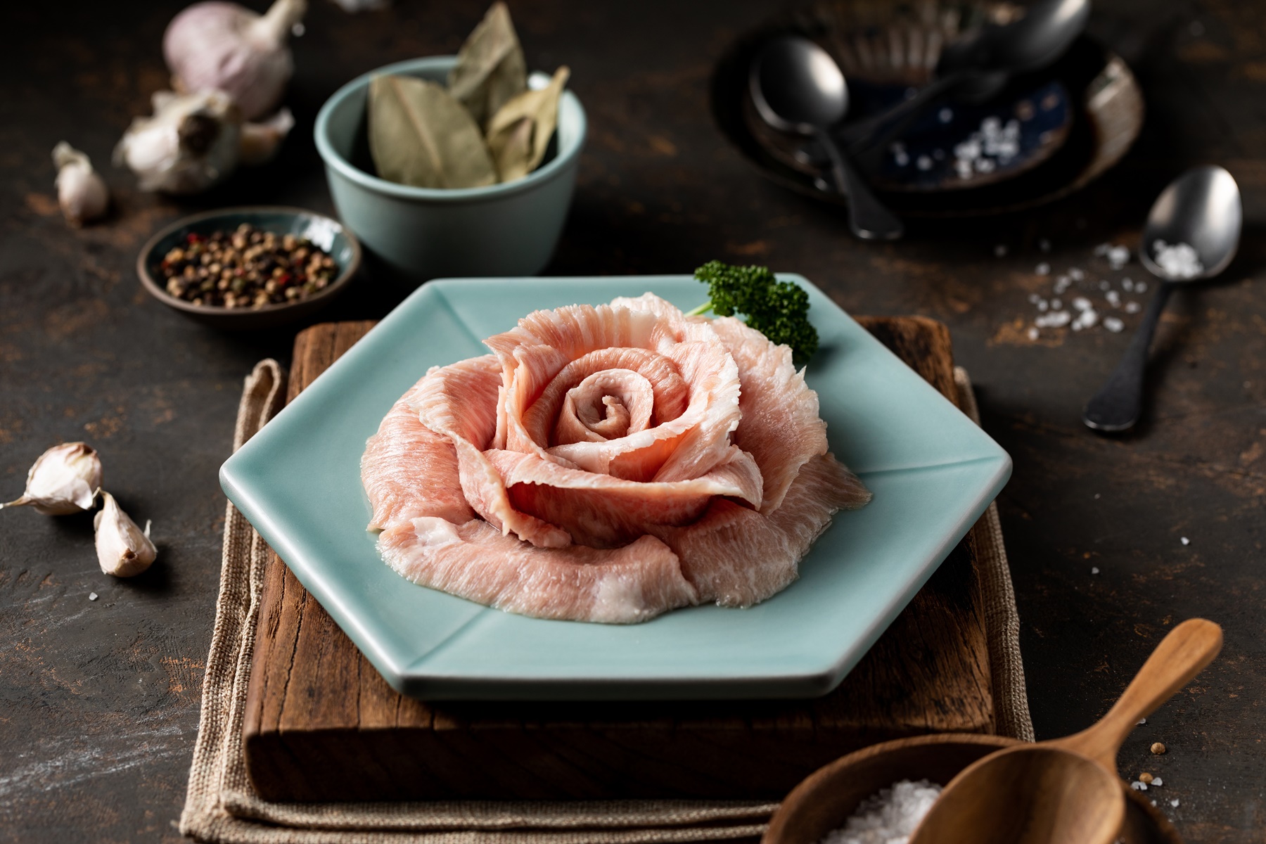 姜滿堂使用的肉品絕不馬虎,像是肉質鮮美的伊比利松阪豬、細膩甜滑的美國PRIME牛肉及日本和牛等,主廚依肉品特性,運用韓式調味手法製成黃金比例醃醬,讓肉品細膩豐潤的原味與醬汁交織出美妙滋味。將爐火上烤得吱吱作響的焦香色肉片、泡菜、蒜頭放到鮮蔬中央,先折起下方葉子,再左右兩邊包起,捏成一口塞入嘴,豐腴和清爽交疊出的層次感,令人回味再三。
