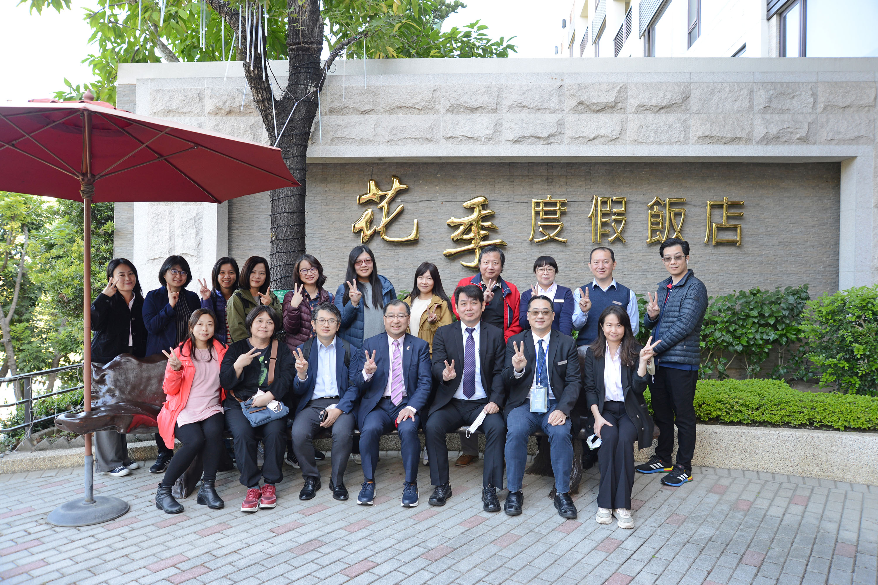 ▲ 合作經營團隊_前排 (中) 力麗觀光董事長 蔡宗易;(左二) 力麗觀光派駐花季代表 楊真宇 ;(右三) 花季度假飯店執行長 林軍旭;(右二) 花季度假飯店總經理 湯孟哲