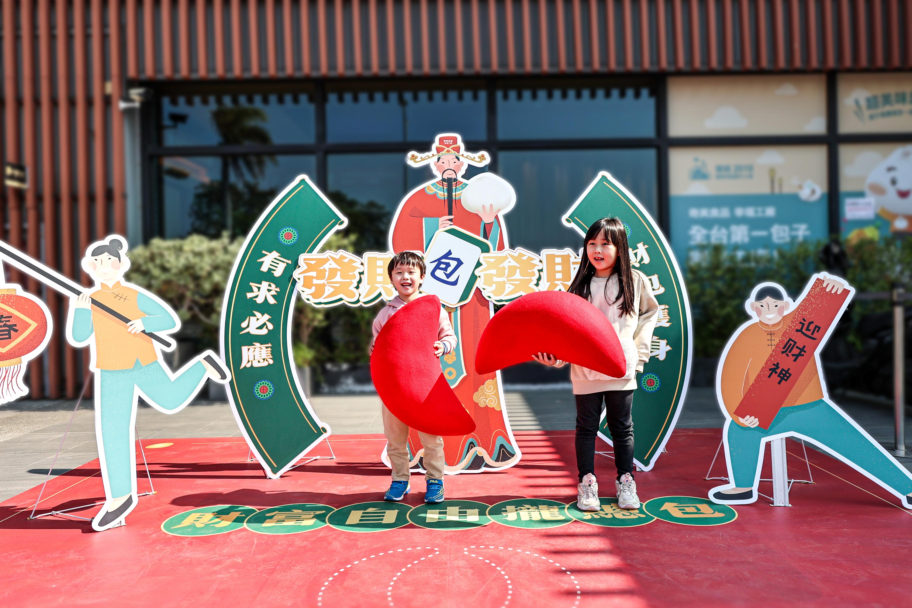 兔年走春來奇美食品幸福工廠,比看看誰是擲筊王 圖/奇美食品幸福工廠提供連假不怕小孩沒地方放電!位於台南航空站對面的奇美食品幸福工廠,被稱為「全台灣最好玩的候機室」,為了響應農曆新年,館方也特別以奇美食品獨家商品「發財包禮盒」為設計概念打造裝置藝術,並於春節期間展出逗趣吸睛的巨型筊杯,邀請民眾擲筊求好運、財富自由攏總包,好拍又好玩!