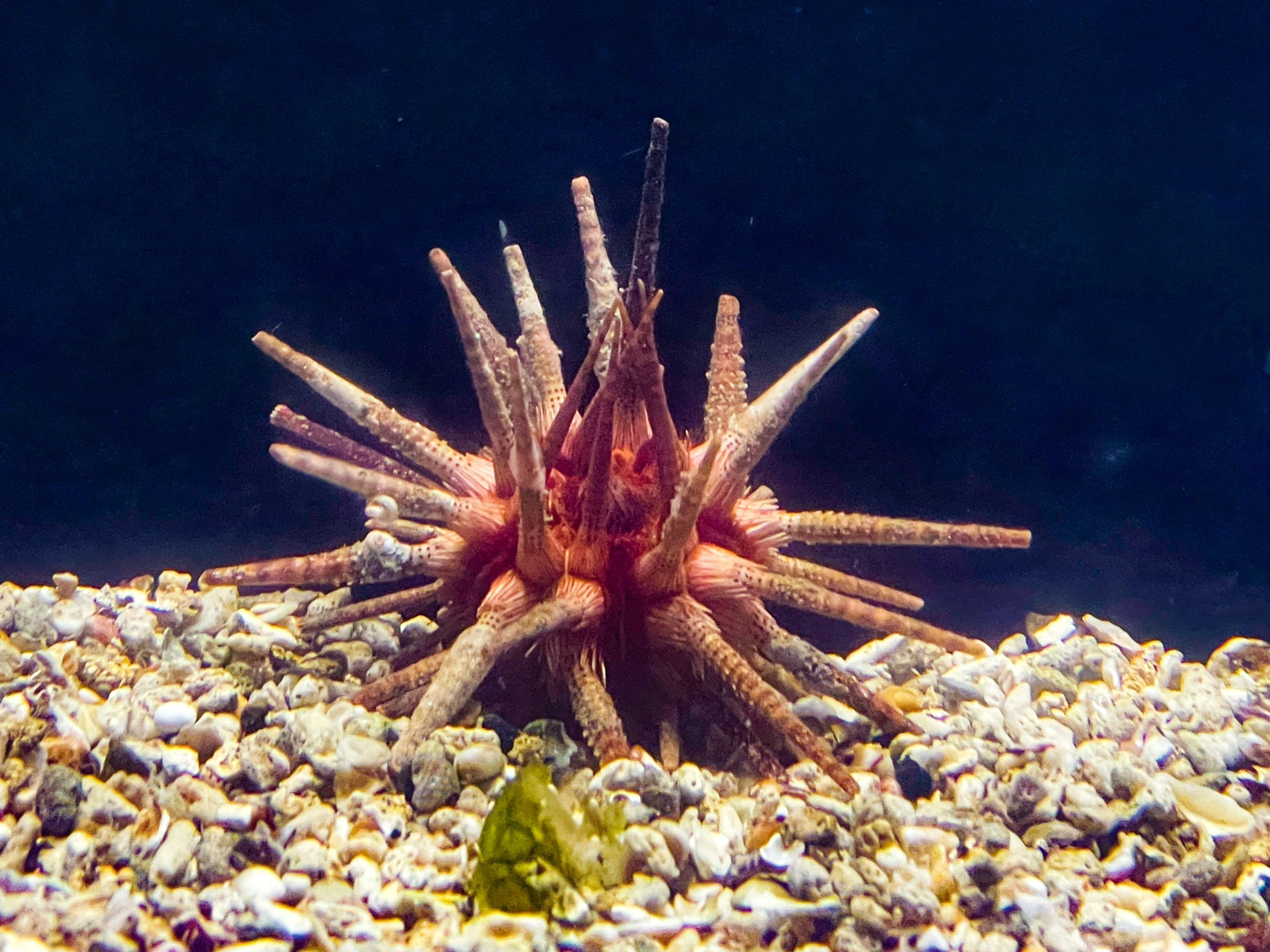 潮間帶泛指高潮線與低潮線之間的區域,漲潮時會被海水覆蓋,退潮時又會露出於空氣間;由於環境變化劇烈,讓這些位於陸海交際,身處於潮汐之間的生物形成各自適應環境的能力。例如俗稱魔鬼海星的「棘冠海星」,不僅腕足比一般海星多,甚至會分泌毒素,也讓許多潛水客避而遠之。而擁有巨大棘刺宛如小水雷的「環鋸棘頭帕海膽」,更會兇猛啃食其他海膽。另外,有八片背甲的「海膽石鱉」,會利用腹足強力吸附在底質上以抵抗海浪的衝擊,背上的八塊殼板更可以保護自己抵禦攻擊。屏東海生館自4月1日至6月25日於台灣水域館河口區特別展示數種酷似外星生物的潮間帶住民,讓民眾都能近距離觀察牠們妙不可言的外觀與習性。