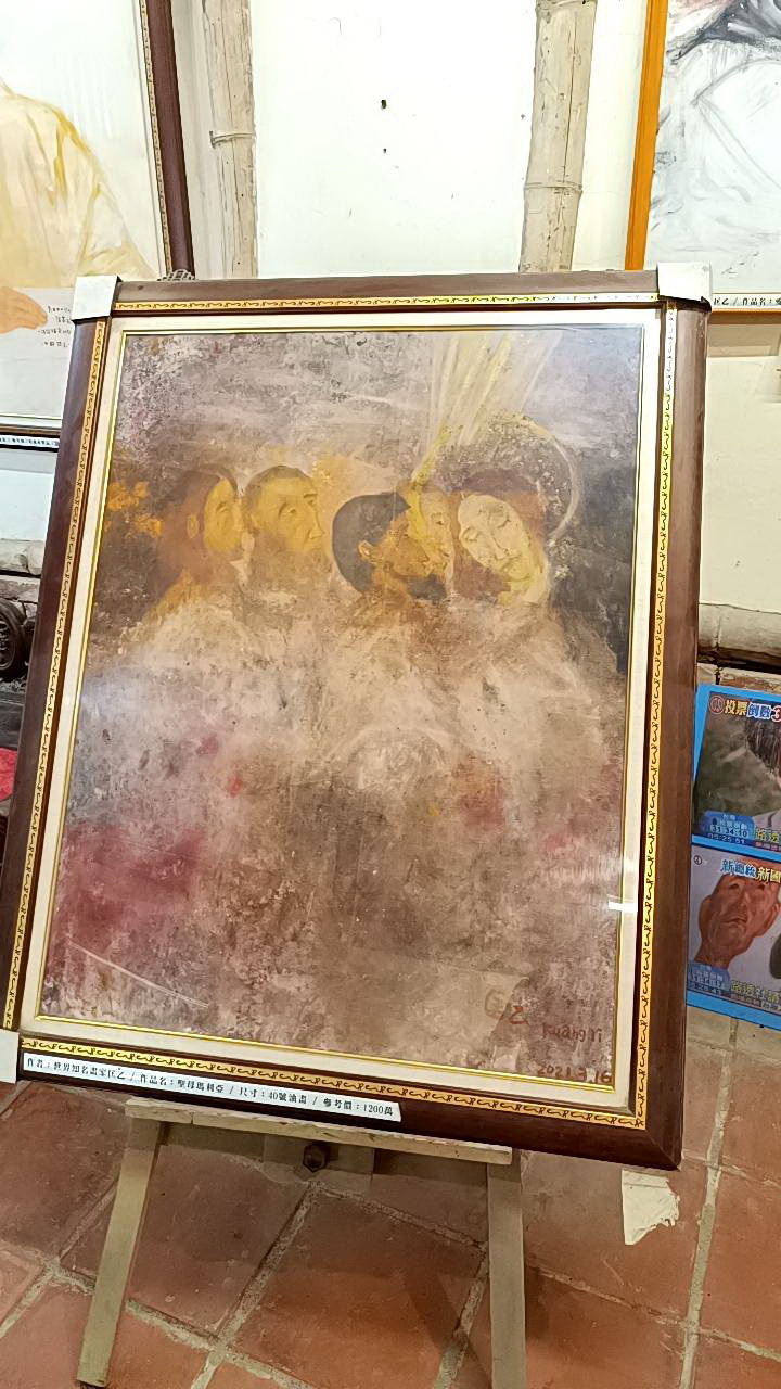 匡乙畫家表示,母親節展示的這幅「聖母瑪利亞」畫作,看起來就好像幾百年的畫作,又有年代的陳舊感,又好似歷代久遠的駁落的痕跡,其中聖母抱著聖嬰,那種慈愛眼神,非常傳神,聖嬰以抽象表現,似有似無的輪廓,有虛無東方易經闡述,結合了東西方的藝術精神,的確是不可多得藝術境界天才畫家作品。