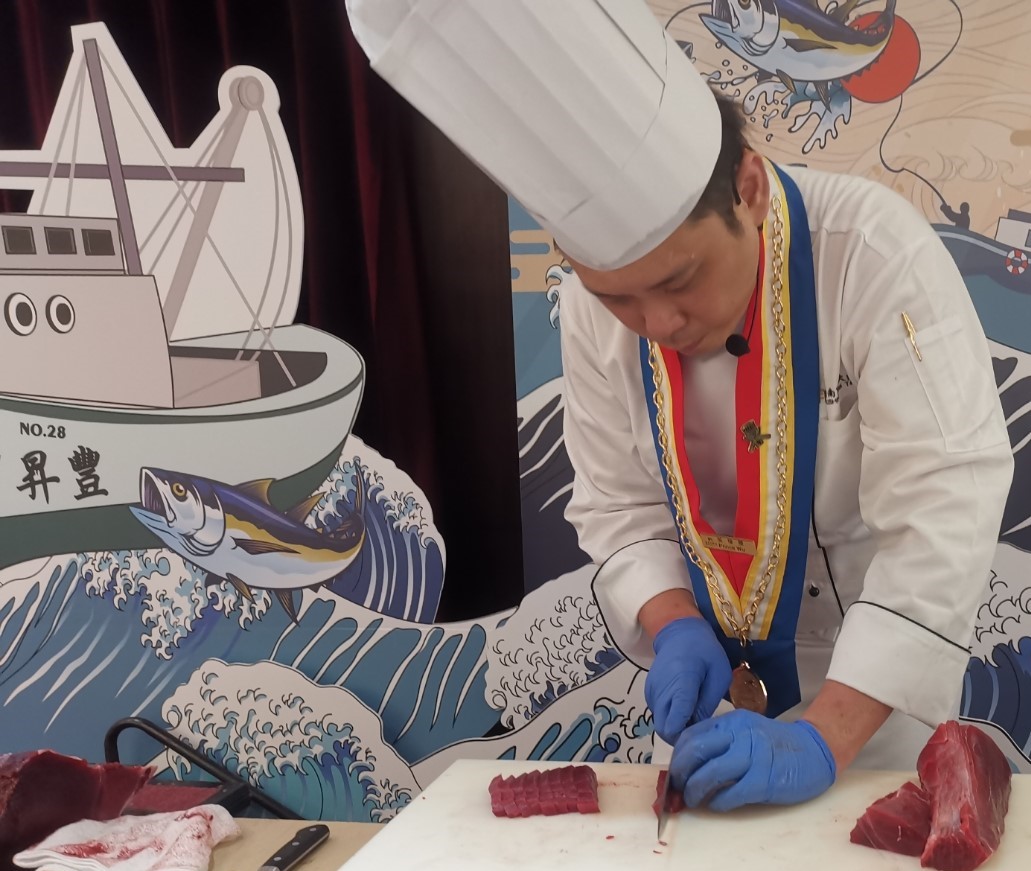 ▲ 東港資深漁民展現手起刀落的精湛殺魚秀功夫