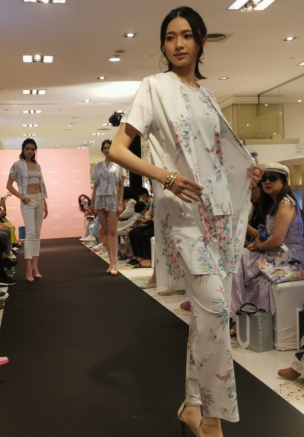 伊林名模走秀主打居家時尚的 Claire de Lune 及 Uchino 看準宅商機,今年春夏推出多款家居服飾,前者以白色為基底, 並大量運用花草元素點綴,呼應春夏的繽紛時尚感,服飾本身修身的設計,以及採用全球產量僅 3%的祕魯 pima 棉花,純棉材質所賦予的彈性,消費者在穿出身材曲線外,同時保有寬鬆舒適的居家感,頂級棉紗的柔軟親膚觸感,讓人遠離尷尬的「濕秀」。後者是來自日本的居家品牌,推出的款式以動植物及墨彩韻染為元素,視覺設計上更加繽紛奪目,而同樣講究舒適、透氣材質,採用三重紗設計,具有柔軟、蓬鬆的特性及優異的透氣性及吸水性,在酷熱的夏日,也能讓肌膚保持乾爽舒適。