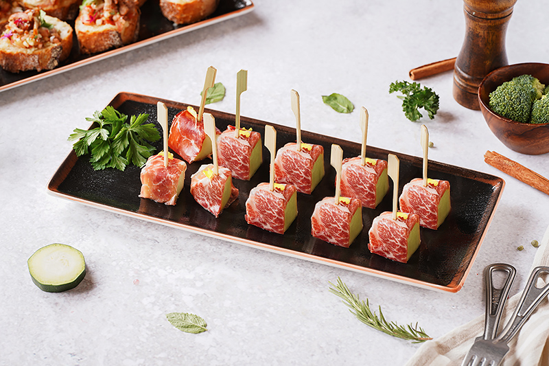 肉食愛好者絕不能錯過人氣自助餐廳「遠東CAFÉ」,精心獻上經典前菜「蜜瓜搭伊比利豬火腿」,主廚特選油花均勻豬後腿製成的生火腿薄片,搭佐蜜瓜享用,鹹香甘甜,餘韻迷人;「手撕伊比利梅花豬肉普切塔」將梅花部位以黑胡椒、義大利香料佐味,烘烤至中心溫度約七十度,蛋白質熟成即出爐,底層為抹上新鮮大蒜及橄欖油炭烤的法國麵包,酥脆口感和肉質香氣完美交織;色香味俱全「爐烤帶骨伊比利豬戰斧」精選帶有十根骨的伊比利豬肋排,淋上橄欖油、月桂葉、扁葉巴西里等香料調配的特製醬料,直火慢烤,透過碳烤程序造就外層金黃、鮮嫩多汁的絕佳滋味,現點現切,香酥誘人。另有多道活動限定佳餚於每日午、晚餐輪番上陣,滿足饕客味蕾!