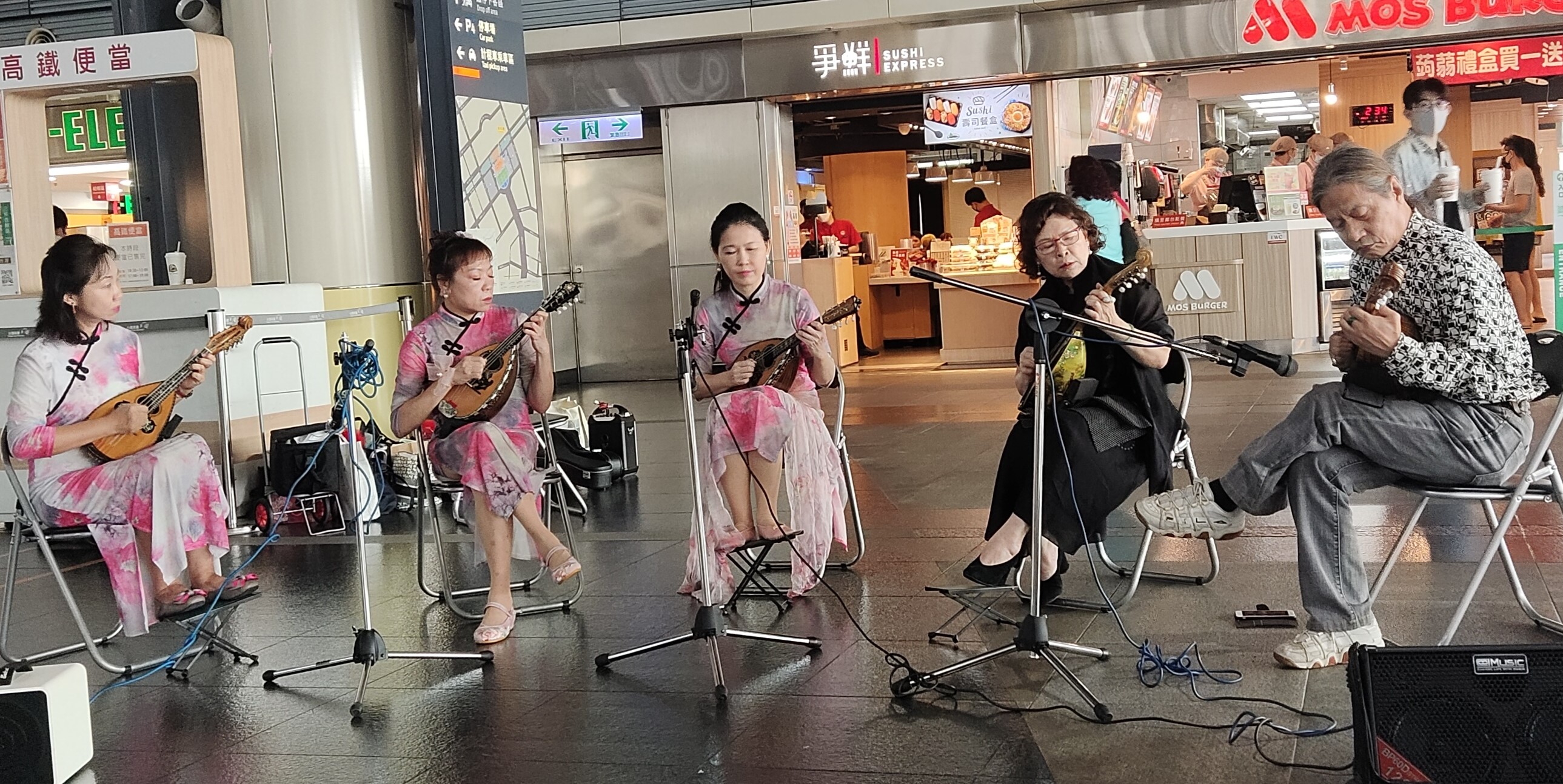 【台南訊】首位獲得美國職業製琴大賽金獎的亞洲製琴家蔡明助大師,9月30日帶領學生「思嚮曲曼陀鈴樂團」一行15人,在高鐵台南站大廳快閃演出「女人花」、「月琴」、「月亮代表我的心」等樂曲,將蔡大師苦心泣血的藝術創新作品,與高鐵旅客共享。曼陀鈴清脆空靈的音符飄揚在車站大廳,令人陶醉不已,過往旅客紛紛停下腳步聆賞,熱烈掌聲不斷,讓這場音樂饗宴成為一次偶然又美好的相遇。