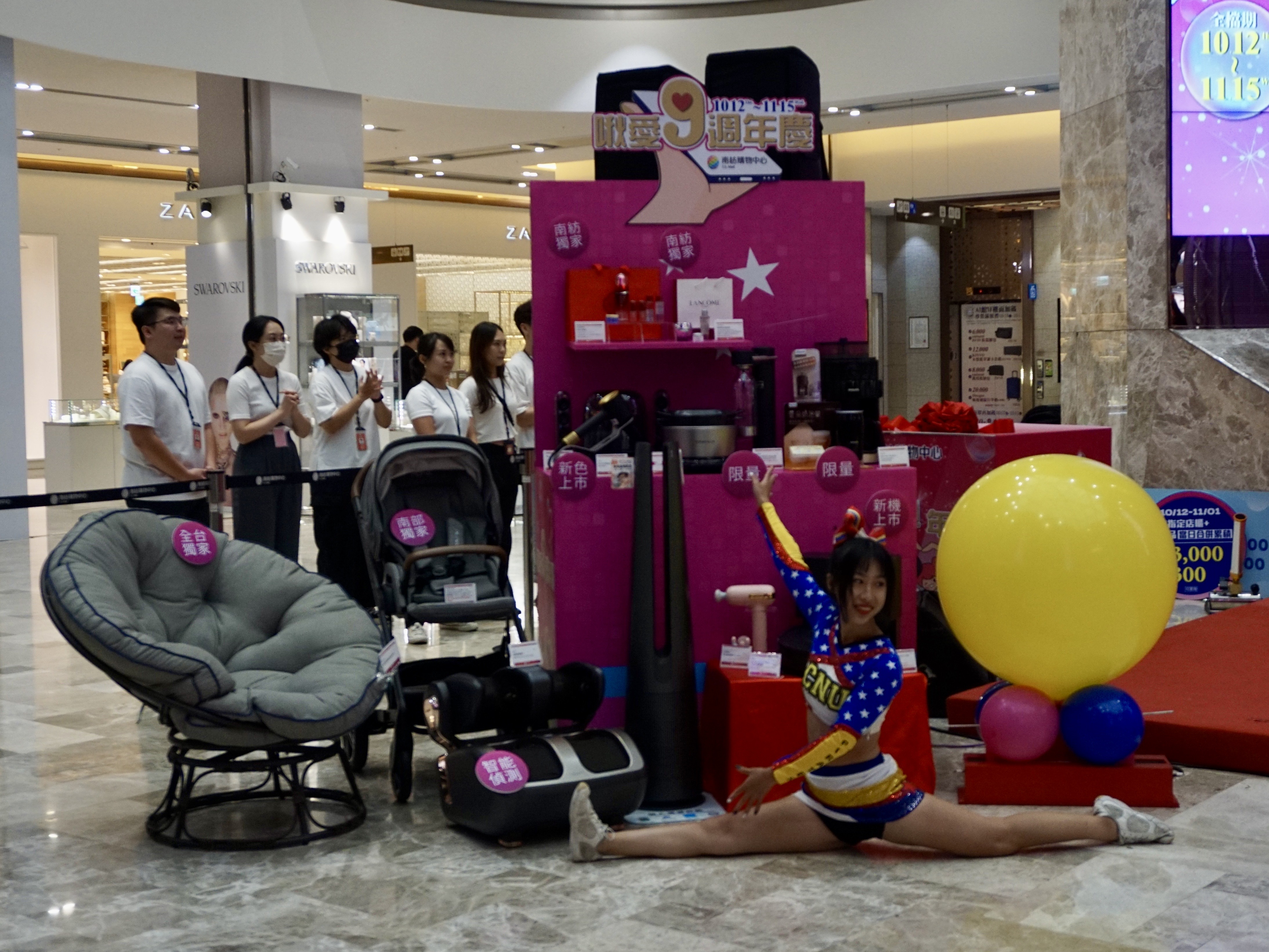 11日下午13時30分,南紡購物中心在A1館1樓時尚廣場舉辦9週年慶誓師大會記者會,首先由「嘉藥競技啦啦隊」帶來熱力四射的表演;隨後南紡購物中心總經理莊景堯、副總經理楊鈵彥等購物中心主管,一同手持彩帶拉開神秘禮物箱,懸掛「突破18億」標語的氣球瞬間衝向天際,漫天彩帶也隨之灑落,眾人齊聲歡呼,誓言以「全員齊動」、「全力以赴」的精神超越18億業績目標。