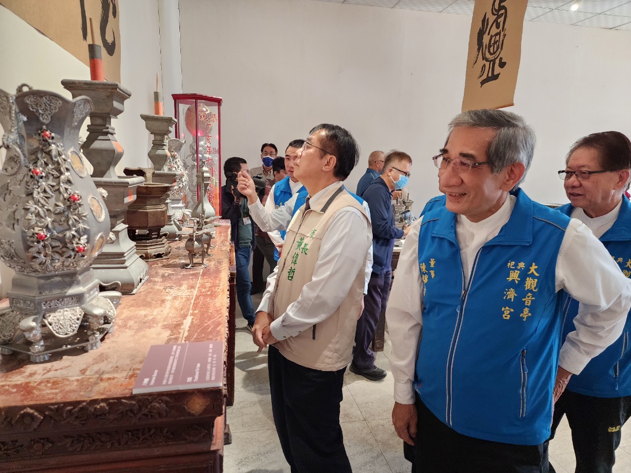 【台南訊】大觀音亭暨祀典興濟宮錫藝展暨楊蕙如錫藝捐贈展,於11月20日上午10時30分盛大開幕,文化部文化資產局局長陳濟民、國立台灣文學館副館長蕭淑貞等、民政局副局長吳明熙等貴賓到場致賀,相當肯定亭宮在有形和無形文化資產保存的貢獻,足見是「宮廟博物館」的典範。