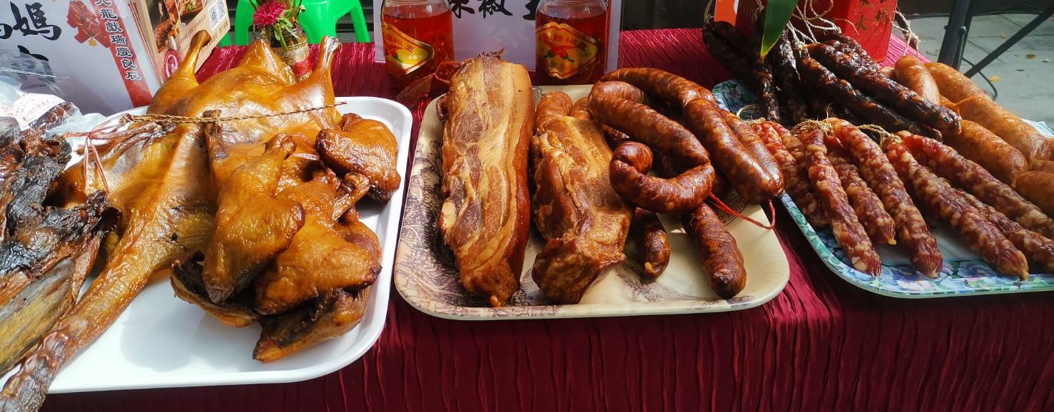 眷村臘肉與香腸臺南市南區區長蕭琇華表示,水交社年貨大街已經舉辦10多年了,一直以來,辦理單位持續推廣好的美食文化,黃偉哲市長為推動文化觀光景點,也在水交社文化園區挹注許多建設,這個年貨大街活動將美食文化結合起來,成為南區的特色。她說,今年的水交社文化季暨眷村年貨大街,將在1月26至28日展開,邀請市民前來感受這裡的文化氣息,選購有濃濃眷村味的美食,將年貨帶回家共享。
