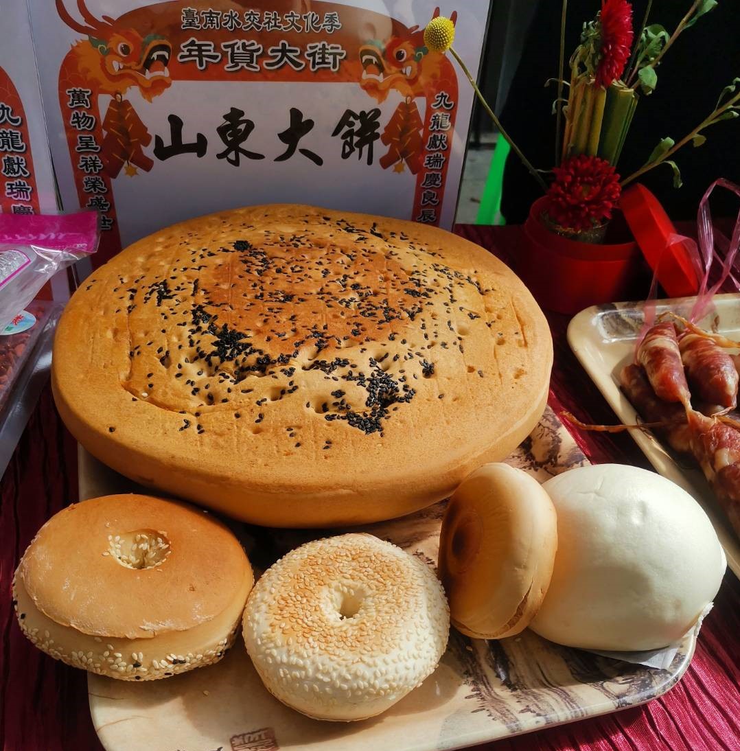 山東大餅明德里里長兼南區里長聯誼會會長陳瑞華指出,今年到水交社辦年貨,有不少眷村美食可供選購,眾多知名商家共襄盛舉,包括馮媽媽的店、劉家雜貨、周村水餃、二空趙家、二空包家、湖南臘肉、道地山東大餅等不同省份風味美食,還有臺南知名伴手禮度小月、所長茶葉蛋、厚禮數等齊聚一堂熱情參與,讓民眾可以安心採買。