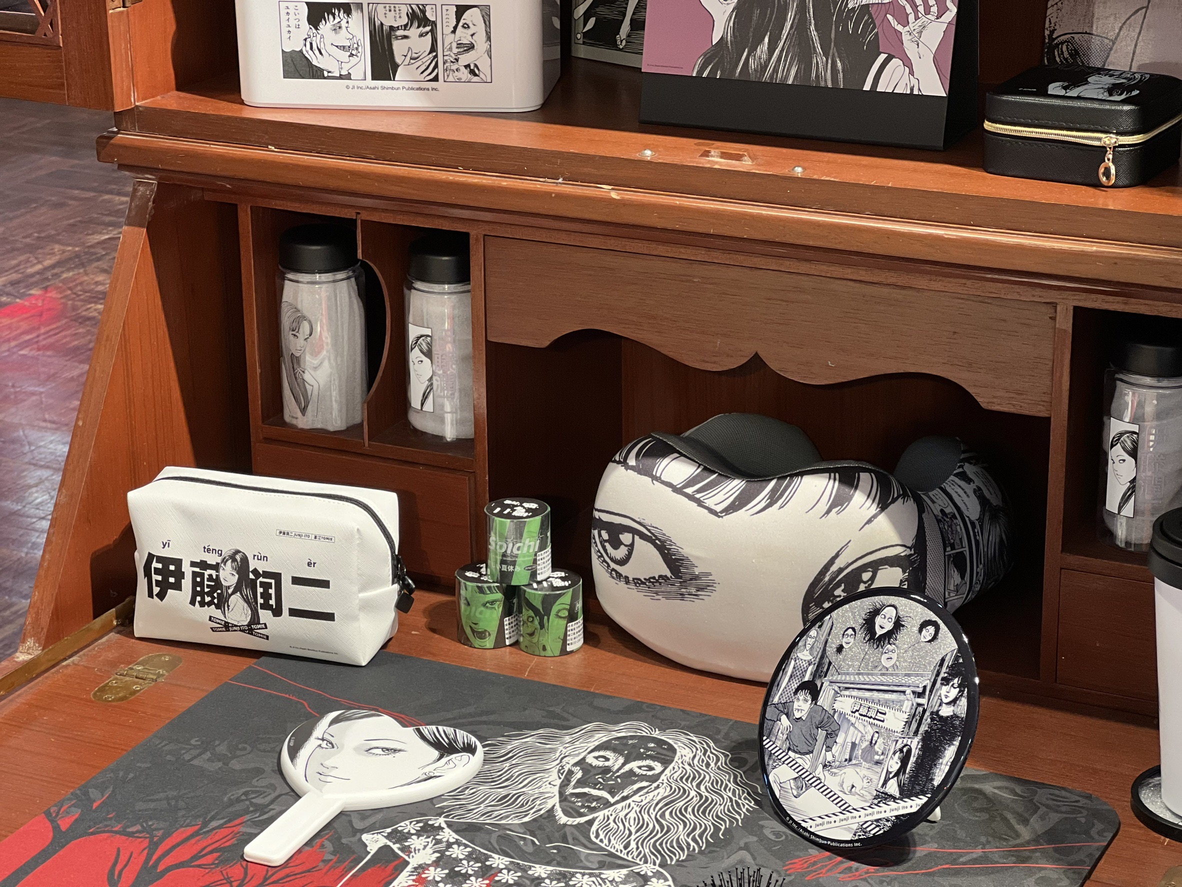 恐怖美學不分國界!展出期間不僅集結百款熱銷商品,食、衣、住、行相關周邊一應具全!並推出「台南限定」首賣新品,多樣高質感生活小物,獨具收藏性還超實用!本次展覽加碼新款獨家商品【台南限定福袋】,內容包含【伊藤潤二後背包】、【雙一長夾】、【伊藤潤二經典盲盒】等眾多超值商品等你來開箱!同場推出美式恐怖作品系列:詛咒娃娃《安娜貝爾》、連環殺手《鬼娃恰吉》、拼圖殺人魔《奪魂鋸》等著名角色相關周邊,完美打造恐怖藝術愛好者的福音,東方西洋兩種願望一次滿足!