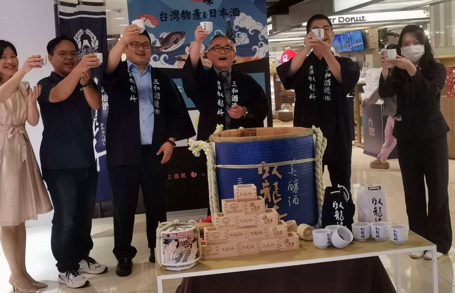 好酒愈陳愈香,飲酒者追求的正是如此香醇的美味,想品嘗品質穩定,深受推崇的日本酒,不必再到日式料理店了,前往百貨公司就可購買嘗鮮!來自日本,傳承338年的日本靜岡知名清酒品牌「臥龍梅」,6月15日於新光三越台南中山店舉辦「台日有情味~日本酒與台灣物產結合」新酒發表會,日本三和酒造株式會社鈴木克昌社長特別親臨推介,台灣物產專家-家昇海鮮肉品超市並與日本酒專賣-源酒屋合作,將日本特產「日本酒(清酒)」與台灣物產結合,以料理的方式帶大家認識日本酒,讓日本酒能出現在台灣家庭的餐桌上,到場品嘗者都讚不絕口。