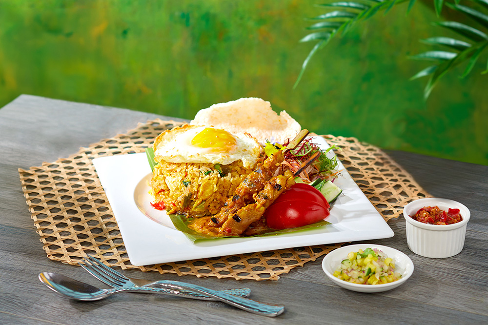 ▲ 「印尼經典雞肉炒飯」是印尼重要的家戶料理,其經典程度甚至登上2010年歐巴馬總統訪印尼的國宴菜單,使用雞腿肉、高麗菜、雞蛋為基礎,搭配靈魂醬料,再利用大火將米飯翻炒至粒粒分明,吸滿醬汁、鍋氣香,每口都家常卻難忘。(新聞照片授權自Asia49亞洲料理及酒廊)