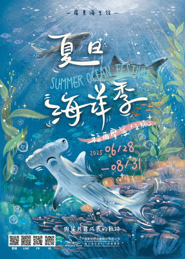 為增加現場民眾參與感,海生館全新海洋吉祥物角色「鯊寶 SharkBao」也將於暑假期間每週六現身世界水域館大廳,舉辦「鯊寶海洋派對」。角色設計融合童趣與海洋保育理念,現場將開放合影、打卡換贈品等親子互動活動,將為暑假館內增添許多歡樂氛圍。同時,結合館慶25週年,海生館特別規劃多項線上系列活動,自 6 月 28 日起正式上線。「福爾摩鯊出任務|我們的海洋故事」線上回憶募集活動邀請民眾分享自身於不同時期參訪海生館的對比照片與成長故事,重溫與海生館共同走過的25年記憶。參與者還有機會抽中夢幻級「夜宿海生館」體驗行程,重拾童年回憶,感受與海為鄰的一晚。「海洋探險家|你是什麼鯊?」趣味心理測驗結合MBTI風格與海洋科普,透過趣味問答對應個人鯊魚個性,發現讓人意想不到的鯊魚配對。「Instagram 輪到你了 | 創意限動分享」則邀請民眾以「海生館回憶殺」為主題,拍攝直式短影音上傳社群,展現「過去 vs 現在」的成長對比、童年重拍或經典場景還原,一起用創意說出屬於你的海洋故事。
