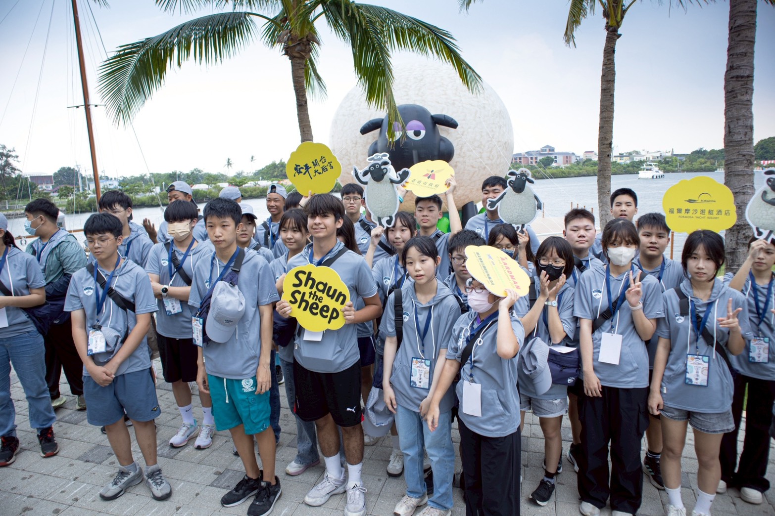 ▲ 學子們與英國人氣角色「笑笑羊」大型裝置合影。