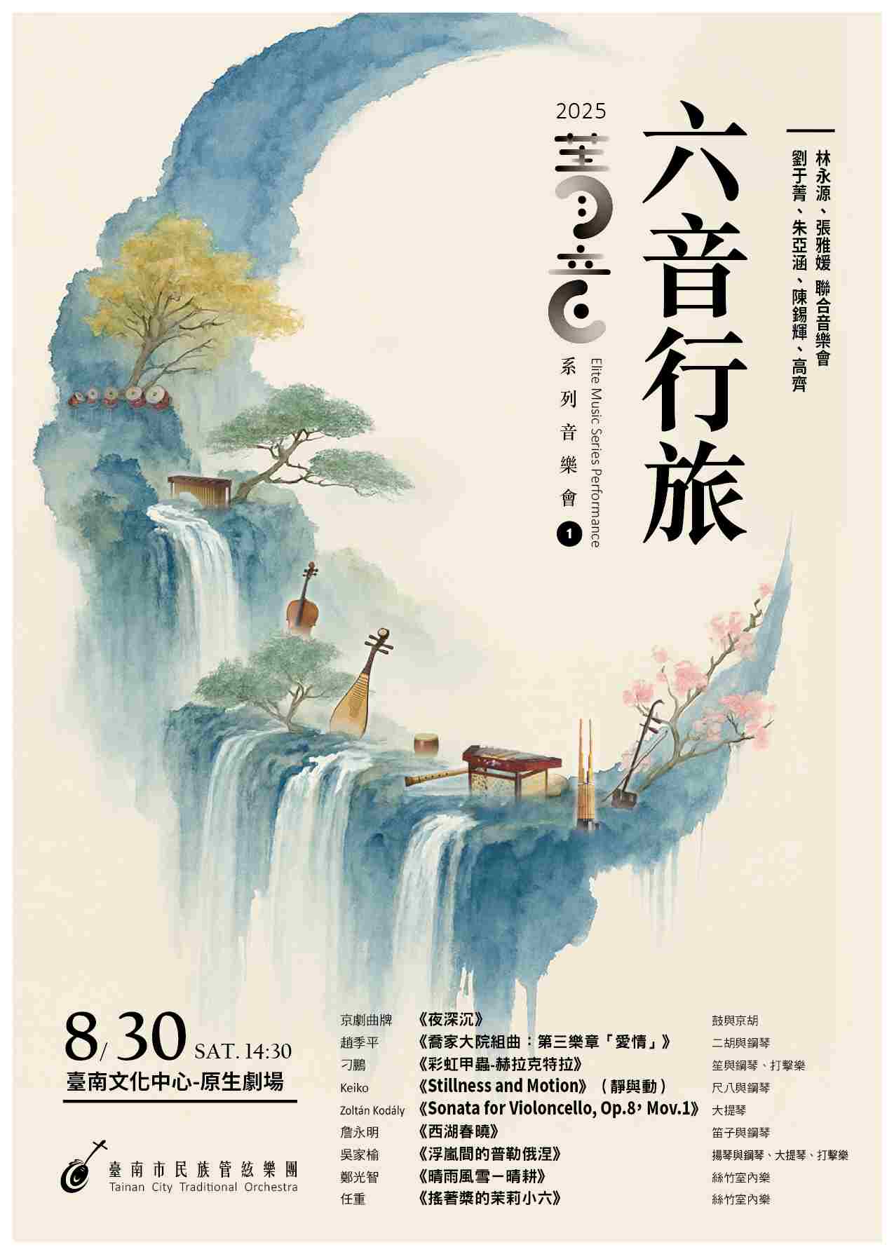文化局局長黃雅玲表示,臺南市民族管絃樂團深耕南臺灣20餘年,「菁音」系列音樂會除展現團內優秀演奏員的實力,也持續拓展民樂的表演形式與風格。今年【六音行旅】由演奏家親自策劃,以獨奏、重奏、合奏等多樣編制,帶領樂迷徜徉民樂跨越古今的魅力。文化局誠摯邀請市民與樂迷在夏末午後共赴一場耳畔的音樂旅行。