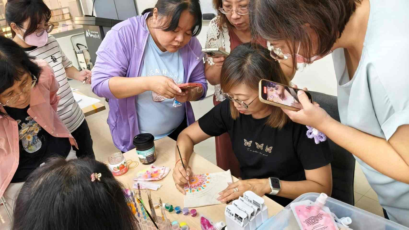 現場氣氛專注又充滿能量,學員們隨著心靈音樂投入創作,有人畫到忘記午餐時間,也有學員課後在群組敲碗期待再開進階班,柳淑娟老師笑說:「看到大家專注的神情,就是藝術照顧最美的樣子。」週末的曼陀羅課程在柔光與音樂中結束,學員帶著滿滿的療癒與成就離開,樂活學程副主任趙久惠指出,未來將持續開設更多結合藝術照顧與長照專業的長照繼續教育積分課程,讓照顧服務不只是技術,更是用「美」與「陪伴」滋養生命的過程。