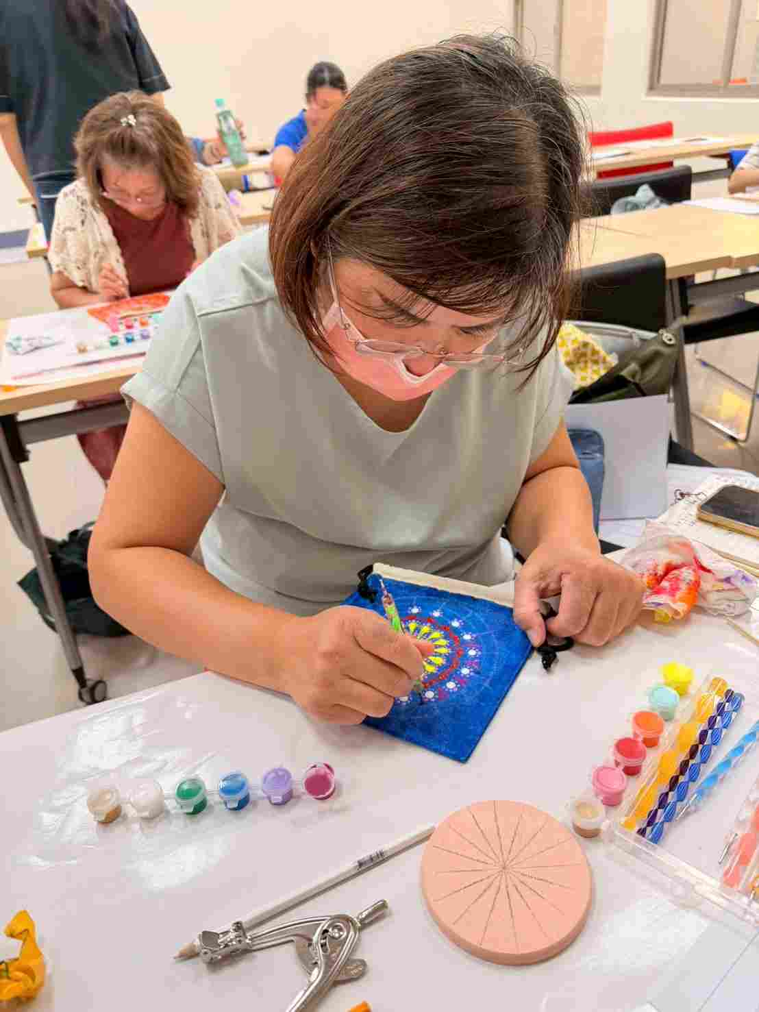 趙久惠助理教授說明,藝術照顧不僅能豐富長者的生活經驗,更能透過創作過程啟動腦部神經連結,提升專注力與情緒穩定,有助於延緩失智與憂鬱的發生,她表示:「曼陀羅藝術的圓形結構蘊含平衡與秩序,當長者在繪製的過程中反覆進行配色與對稱思考時,大腦會被激發出新的連結,這不只是畫圖,更是一種腦部的健身運動與心靈的療癒。」