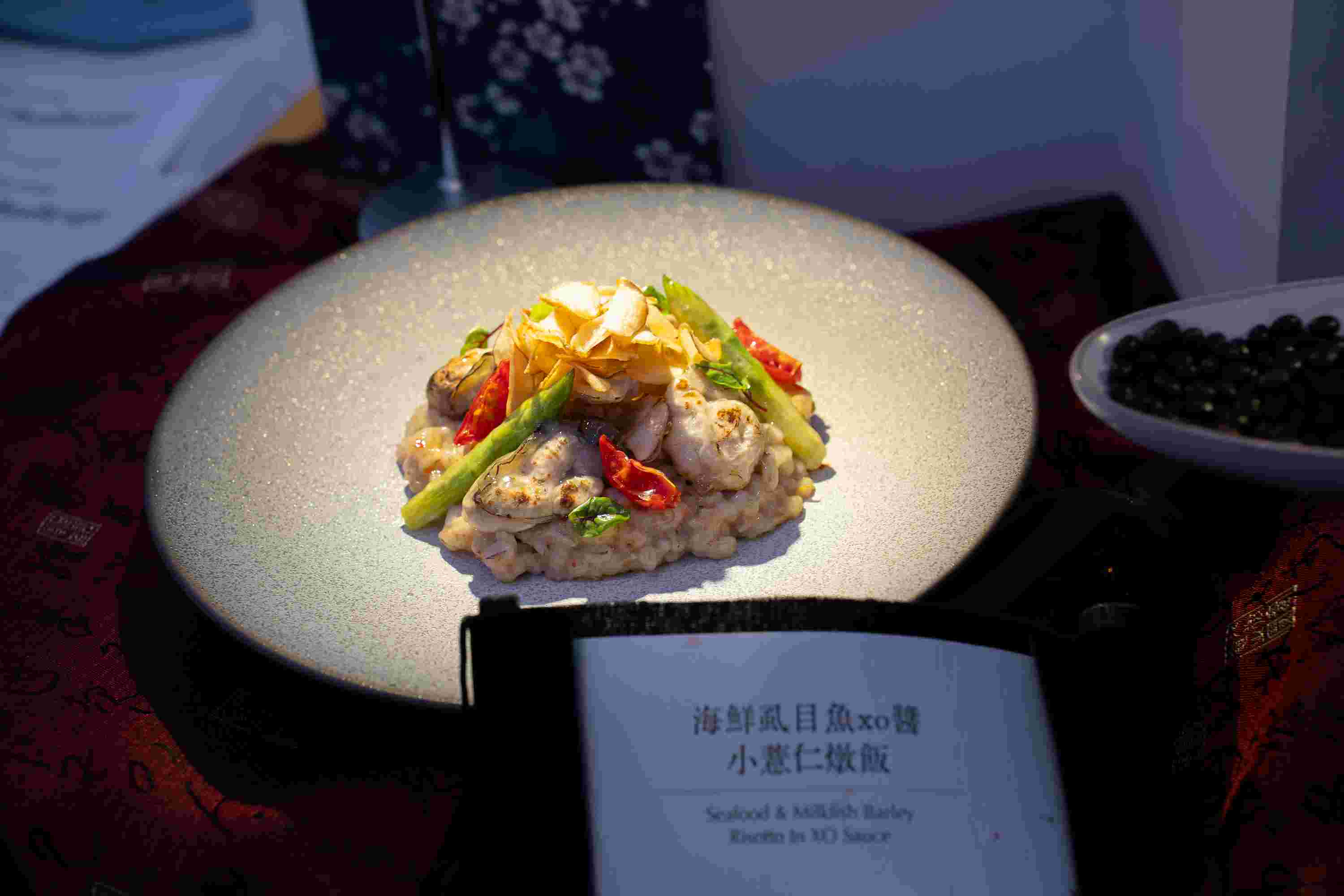 禧榕軒宴會廳主廚-柯秉佐,以「海鮮虱目魚XO醬小薏仁燉飯 & 牛奶魚凍鮮蝦塔殼佐鳳梨莎莎」榮獲「餐酒料理類臺南在地食材組」金牌,將臺南知名的虱目魚作為主題,將豐富養殖海鮮資源結合農業特產,以中西合併的料理手法,展現餐點的獨特性!