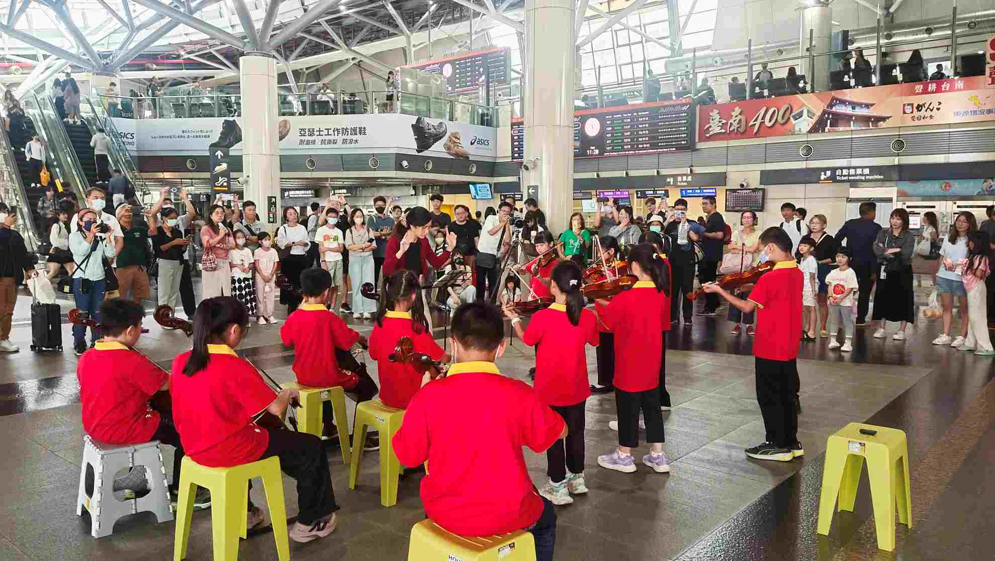 2025 年 10 月 24 日 18:21 指揮老師與小朋友默契十足高鐵台南站10月24日聚集多位小小演奏家,為旅客帶來藝術驚喜!來自台南市歸仁區「文化國小弦樂團」於車站大廳快閃演奏多首經典名曲,不僅展現平時練習成果,也深刻觸動旅客心弦,贏得熱情掌聲與鼓勵。學童表演後,特別感謝高鐵台南站提供場地,讓他們獲得旅客與聽眾的直接回饋,增添孩子們演奏的信心。 「文化國小弦樂團」多次參加全國各地演奏活動均獲得好評,葉亮宏校長表示,小朋友有機會在高鐵車站體驗不一樣的表演方式,是非常難得的練習機會。期許未來小朋友能保持對音樂的熱愛,更將音樂的美好,分享給身邊的人們,讓更多人感受音樂的魅力。 旅客鼓掌讚美24日學童們演奏的曲目不僅融合多國風情,更將古典音樂融合流行元素,愛爾蘭熱情與動感的「火焰之舞」,英國民間音樂「聖保羅組曲」,最後則以經典卡通「灌籃高手」主題曲劃下句點。 高鐵台南站高誌隆站長表示,孩童們來到車站演出,不僅帶給旅客驚喜與感動,更讓台南站洋溢著濃厚的藝文氣息,期許透過多元且豐富的展演活動,將文化與藝術氛圍浸潤車站各個角落,展現出高鐵台南站充滿在地活力的藝術創意。 文中廣告 (In-article)