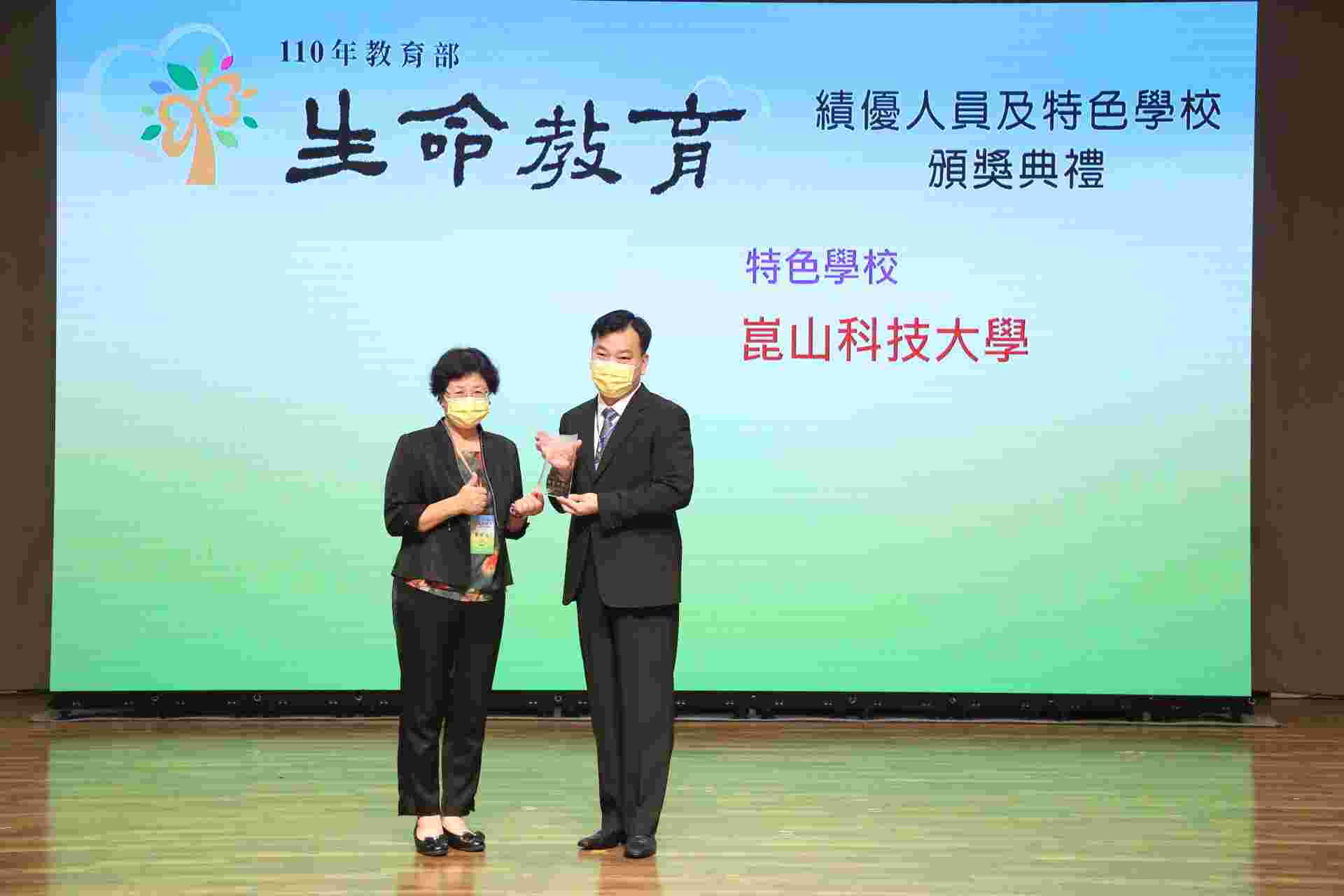 ▲ 崑山科大榮獲「110年教育部生命教育績優人員及特色學校」