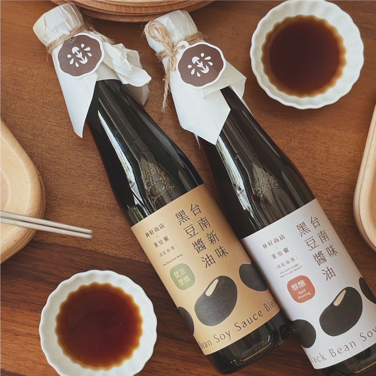 「雙豆雙釀 ‧ 台南新味⿊⾖醬油(原⽣種 ×台南5號)」則是葉怡蘭期望體現台灣醬油的獨樹一幟特色與多重面向、同時表現風味調配之極致可能性之作。