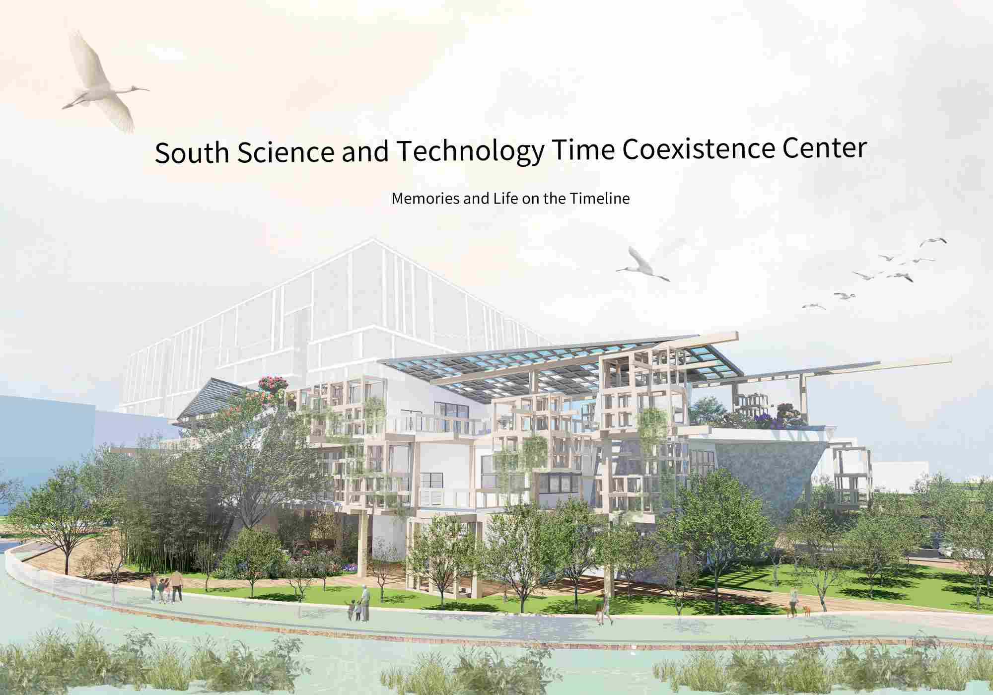 由夏偉良老師指導畢業生楊丞凱的作品「南科時光共棲所-時間軸下的記憶與生活」(Urban Evolution: South Science and Technology Time Coexistence Center - Memories and Life on the Timeline),主要聚焦於科技產業快速擴張下的文化消逝、生態破碎與家庭疏離等議題。基地鄰近科學園區,設計融合生態與考古意象,建築採用斜板與模組化鋼構結合木構系統,具備調整與再組構的可能。空間規劃導入農業體驗、親子共學與文化教育功能,並搭配再生能源與雨水灑灌系統,以營造具文化延續與生態共融的共享教育場域。