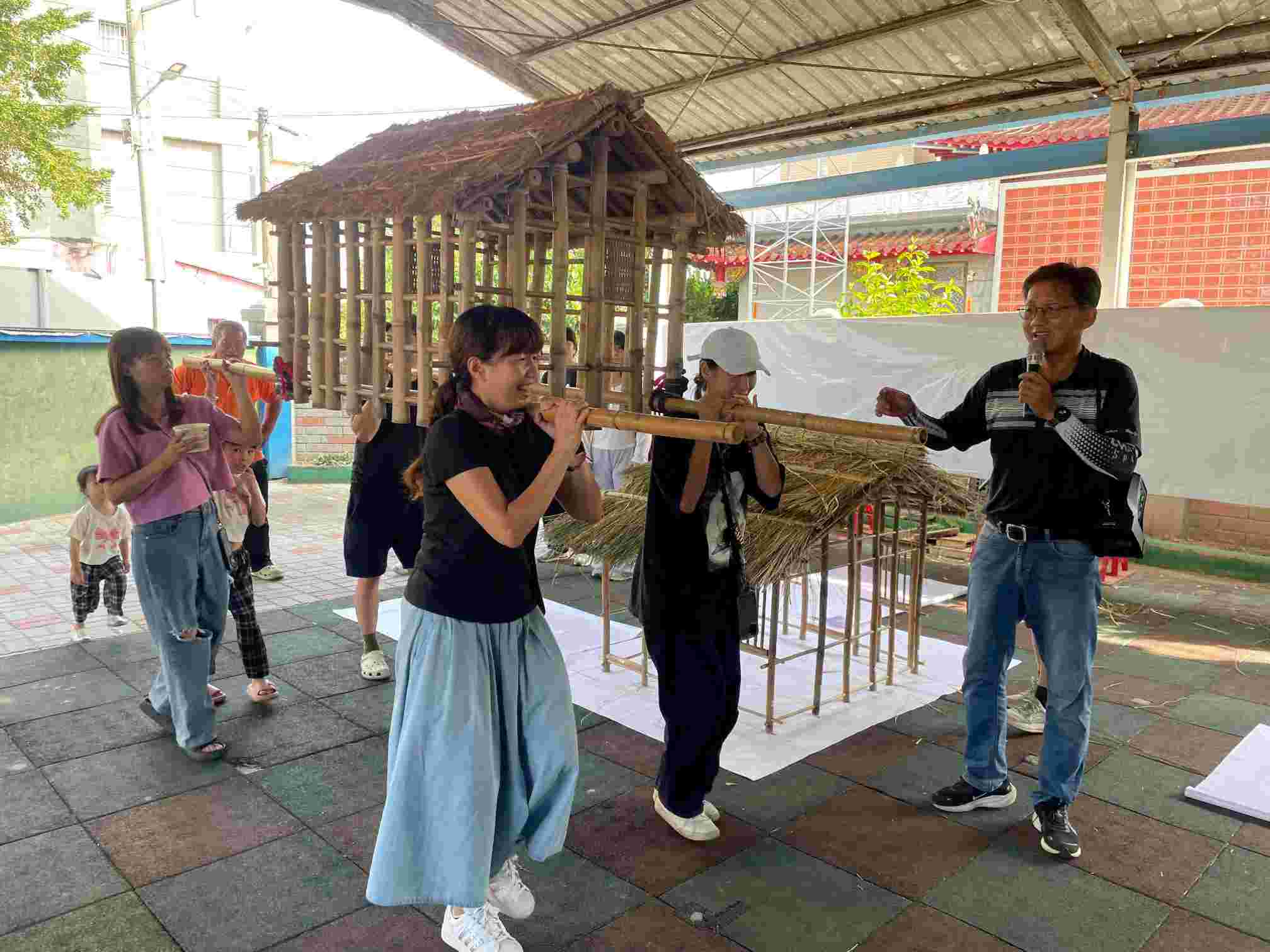 最後,黃寶東校長帶領全體參與者扛起興安宮戶外大型竹籠茨,讓整個活動達到高潮,在眾人點讚的歡呼聲中結束當日體驗活動,現場充滿熱烈的學習氛圍與感動交流,參與民眾在動手過程中感受竹構建築的巧思,也體會傳統工法背後的智慧與耐心,有民眾表示:「原以為竹屋只是古早工法,沒想到結構這麼穩固而且環保。」