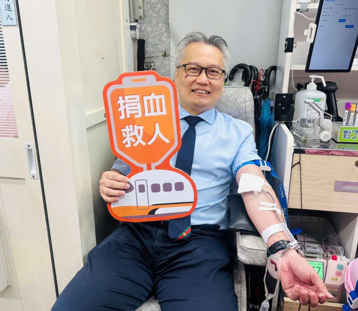 台灣高鐵「寒冬送暖捐血傳愛」自2012年舉辦以來,已邁入第十四年,累計吸引超過二萬餘位捐血人參與,讓更多需要幫助的傷病患,獲得即時的援助。今日活動,台南車站同仁包含站務、行控、維修及站內店家一起挽袖捐熱血。不少在地民眾及旅客也特地前來車站展現愛心,挽起衣袖、捐出熱血,參與這個有意義的活動。更難得的是奇美醫院ICU陳志金醫師一早也現身捐血現場,獻出500 c.c.熱血,力挺這次捐血活動。陳醫師表示,醫院ICU是用血大戶,因此他在募血推動更有一份責任感,要自己捐也要CALL大家一起捐。陳醫師說,每一袋血都很重要,每次在幫病患輸血時,都是懷抱著感恩的心來看這些血袋,特別是自己親身參與捐血後,體悟更深。每一條生命的延續,都是募集眾人之愛,我們看似救了一條命,其實是圓滿了一個家庭,避免家的破碎。