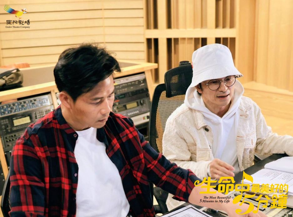 果陀劇場舞動奇蹟音樂劇《生命中最美好的5分鐘》10月開賣後熱度不減,因觀眾反應踴躍,劇團更順勢加開高雄場次。日前劇組已正式投入排練,也舉行開工排練拜拜儀式,全體團隊誠心祈求排練與演出都能順順利利、觀眾滿座、票房大賣,為接下來的密集準備工作揭開好采頭。除了排練開跑,上週四劇組也啟動宣傳曲的重新錄製。原班人馬唐從聖、楊奇煜(小煜)與新加入的方宥心、鎮萬鈞齊聚錄音室,由音樂總監陳國華掌舵製作。錄音現場氣氛愉快,國華老師特別稱讚小煜相較 2021 年首度錄製時更加成熟,狀態極佳,因此火速通過、成為當天最早收工的演員。剛從急診復原的唐從聖也到場錄音,雖然他上上週末因外地演出突感不適送醫,但已順利康復,特別藉此向粉絲報平安,並將以最好的狀態投入後續排練與演出準備。