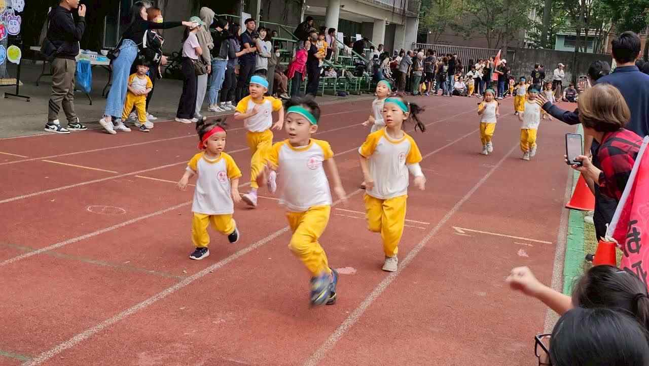 初冬暖陽,光華高中的操場人聲沸騰,因為幼兒園的小朋友與家長正在進行一年一度的「親子夕陽運動會」。