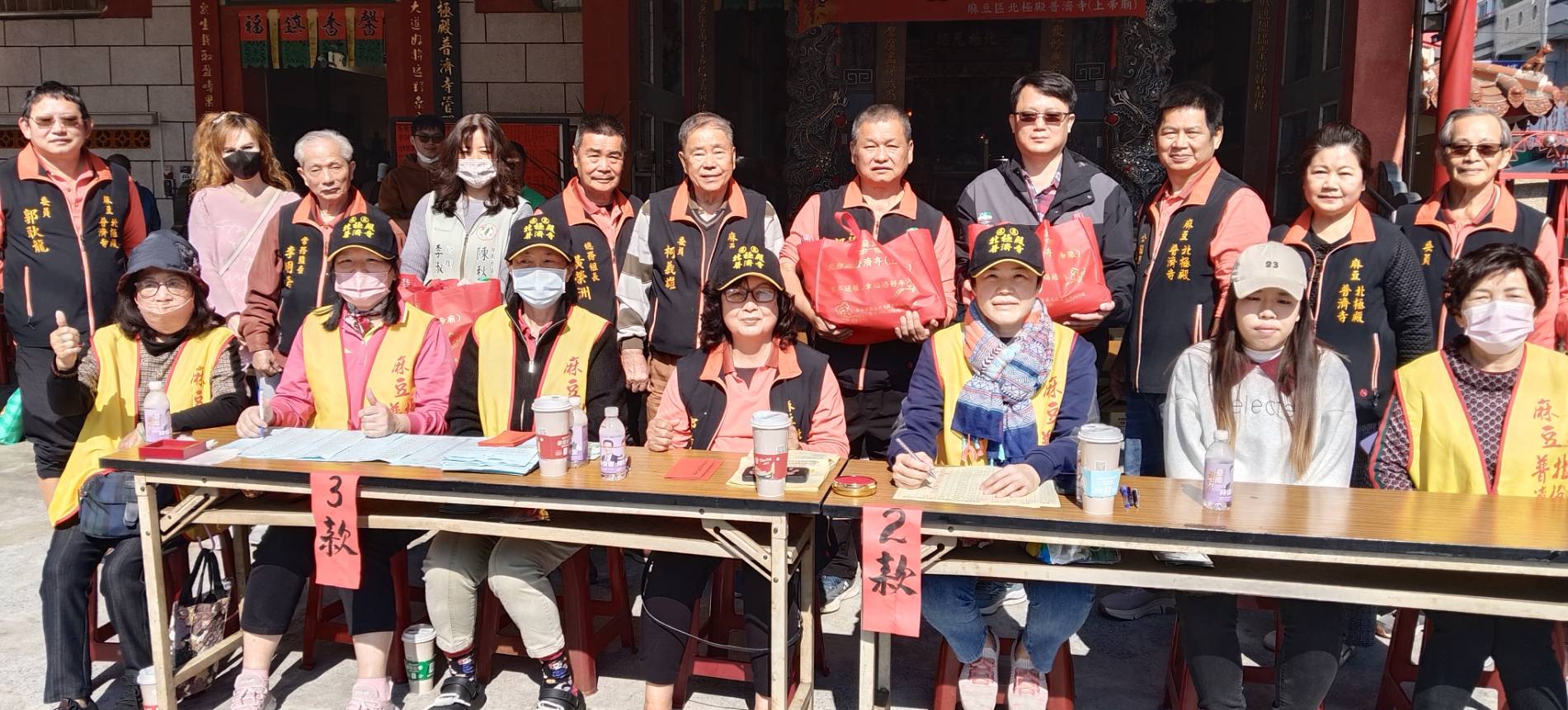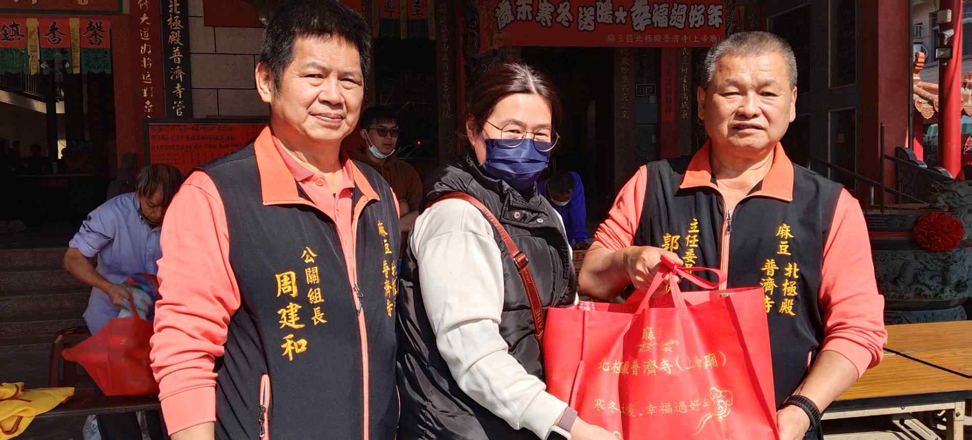 麻豆北極殿普濟寺1月11日舉辦115年寒冬送暖活動合影此次歲末寒冬送暖活動,贈送一、二、三級低收入戶每戶2,000、1,000、500元紅包,共計138戶受惠,並發放民生物資給各戶及包括北台南家扶中心、麻豆普門仁愛之家、官田永靜教養院、華山基金會、西港豐德教養院、台南市復健青年勵進會等慈善單位與弱勢團體,總計發送現金紅包105,500元,沙拉油180罐、5 公斤裝白米750包、關廟麵240包、醬油360罐、味全花生麵筋40箱、麻豆合口味肉鬆138包。