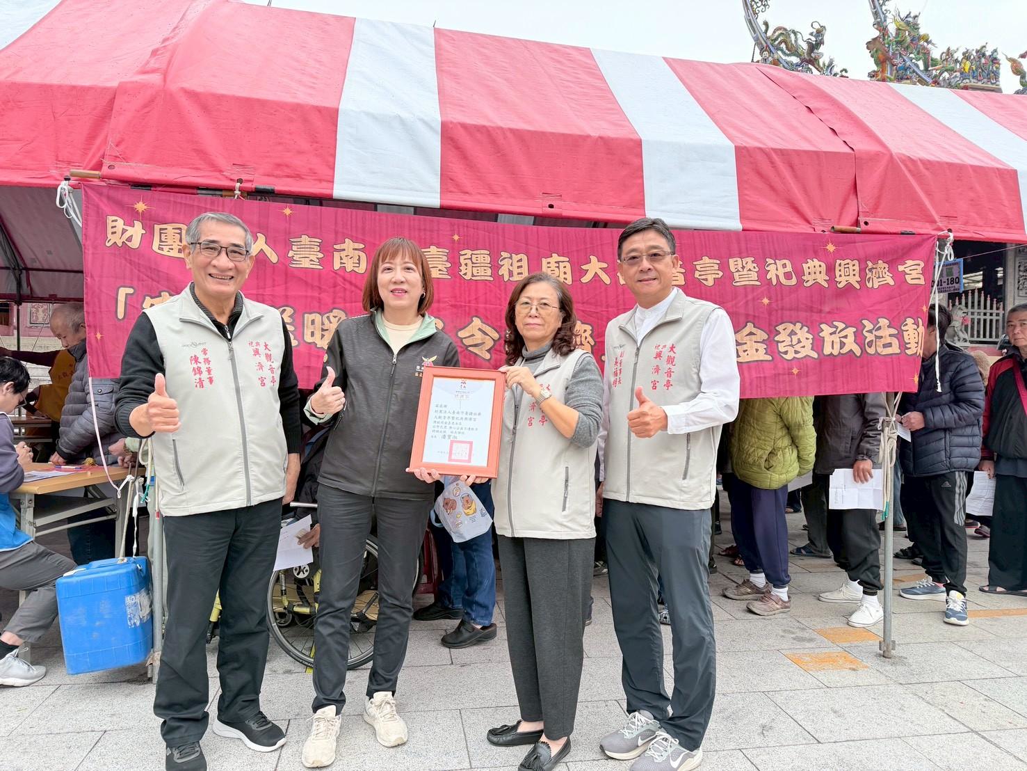 為關懷弱勢、傳遞社會溫情,財團法人臺南市臺疆祖廟大觀音亭暨祀典興濟宮秉持觀音慈悲精神,於1月31日舉辦歲末公益活動,上午進行「寒冬送暖」公益關懷行動,陪伴民眾溫暖迎接新春。