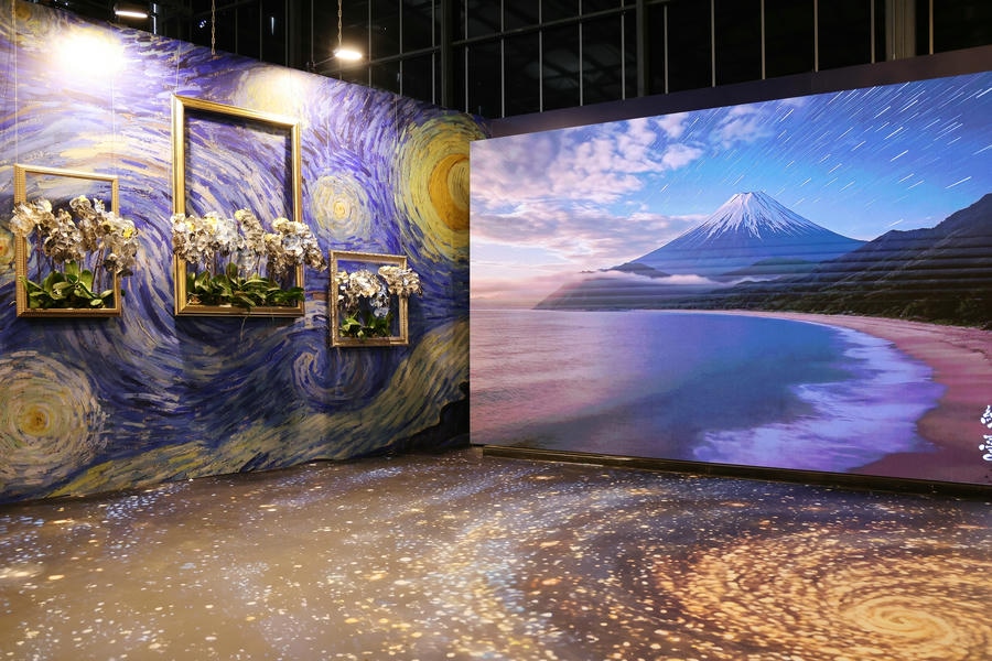 ▲ 「變異花域」展示了臺灣蘭花作為文化媒介的無限可能,其中最受矚目的便是以實體蘭花結合噴墨藝術重現「莫內世界名畫」。
