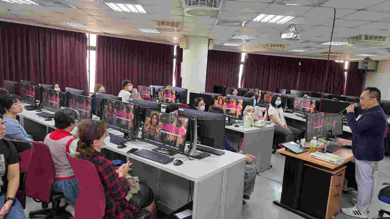 視傳所所長陳淏煬副教授也在現場分享了 AI 數位創作的未來趨勢,他曾參與奇美博物館多項重大展覽的數位媒體規劃,在工作坊中他強調:「當代的視覺設計不只是美學表現,更是整合科技與敘事的核心能力。」此外,曾惠青副教授則以自身跨足純藝術與動畫、並獲得多項國際大獎的經歷,鼓勵學員透過 AI 工具拓展職涯廣度;林芳年副教授亦參與課程籌劃,將多年設計實務經驗融入教學,提升學習成效。