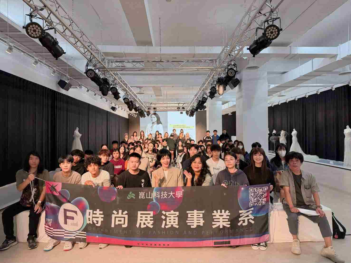 ▲ 時尚系邀請攝影師王雨薇(前排右4)蒞校分享跨屆攝影心法,全體合影崑山科技大學時尚展演事業系 114 學年度第 1 學期「職場專