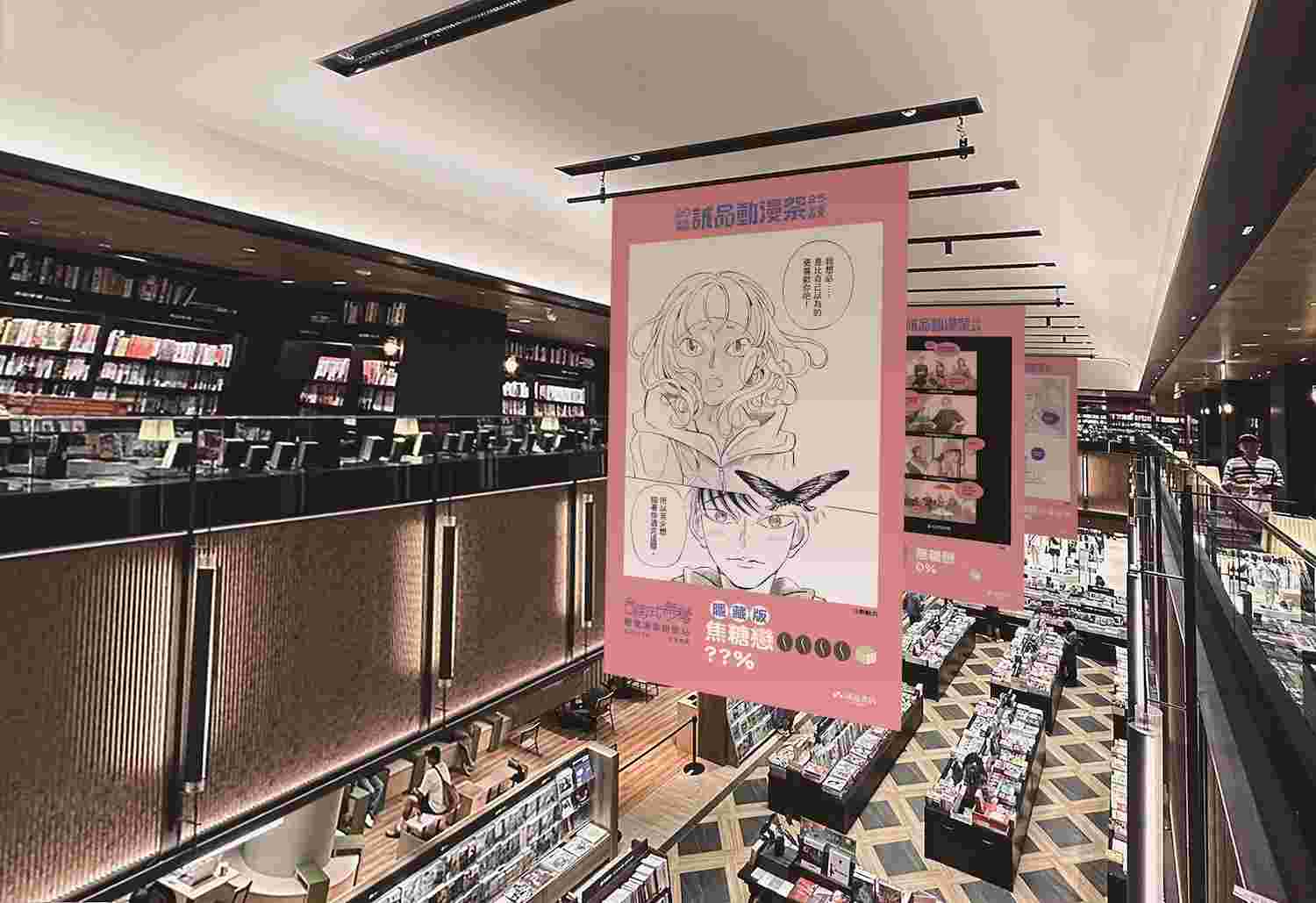 ▲ 「2025誠品動漫祭」於誠品生活台南雙層書店打造《獅子藏匿的書屋》等3大愛情漫畫巨型掛幅(圖為合成示意圖)「2025誠品動漫祭