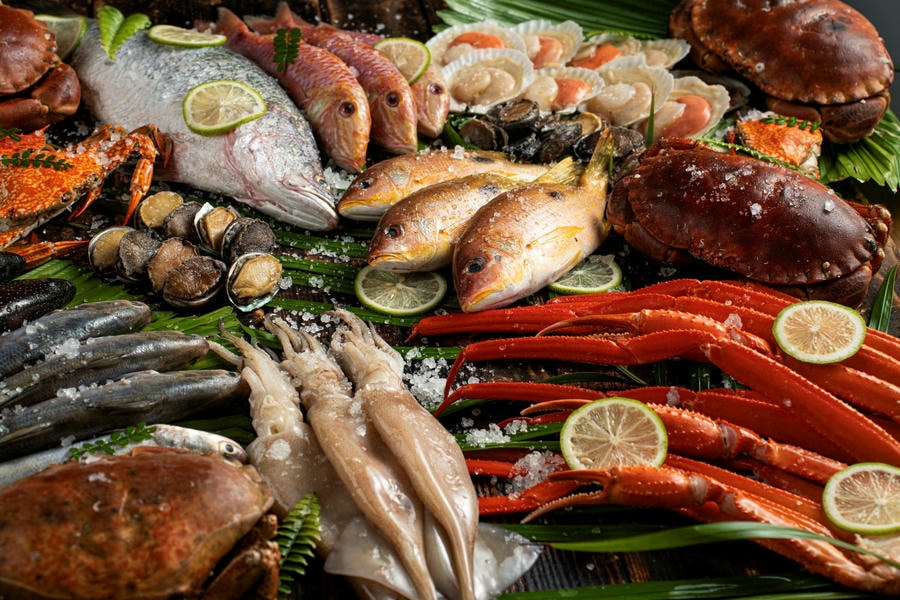 ▲ 元素餐廳嚴選新鮮漁獲隨著盛夏來臨,正是品嚐海味的最佳時節!台南大員皇冠假日酒店元素自助餐推出【夏日海鮮季】主題料理,嚴選每日現