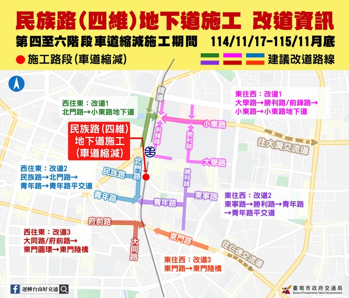 【民族路(四維)地下道11月17日起進行鐵路地下化第四至