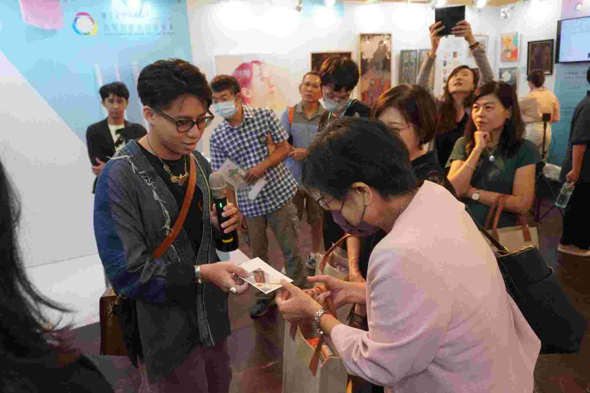 ▲ 南大視設系蔡育恆同學向陳惠萍校長介紹作品理念,分享創作背後的文化思考與設計歷程國立臺南大學視覺藝術與設計學系師生團隊參與臺南市