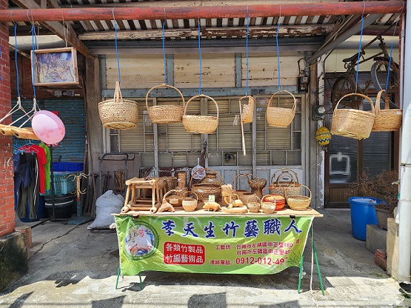 ▲ 假日左鎮老街上,可購得李天生竹編作品。(鄭佩雯拍攝)一竹多用樣樣通 臺南市觀旅局2025年「臺南奇人帶路」系列報導,邀請
