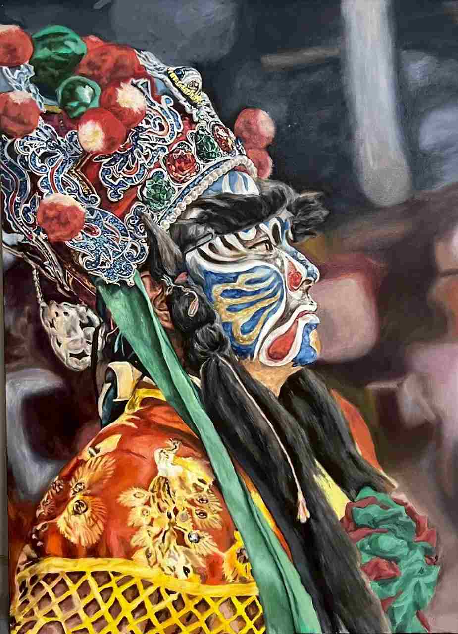 ▲ 郭博士獎(西畫第三名),黃昱棋,作品名稱:臉譜南美展為了鼓勵新進藝術創作人才、吸收新血輪,每年都會舉辦全國性的徵選作品活動,公
