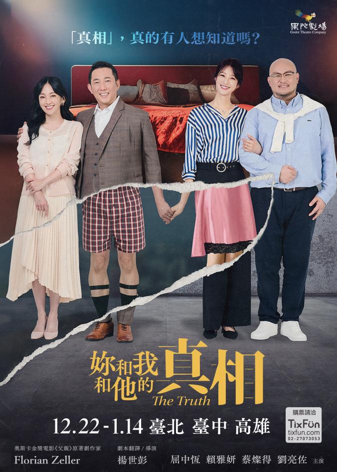 ▲ 《妳和我和他的真相》由屈中恆、賴雅妍、蔡燦得和劉亮佐四位劇場鬼才合體演出果陀劇場全新劇作《妳和我和他的真相》,改編自法國知名劇