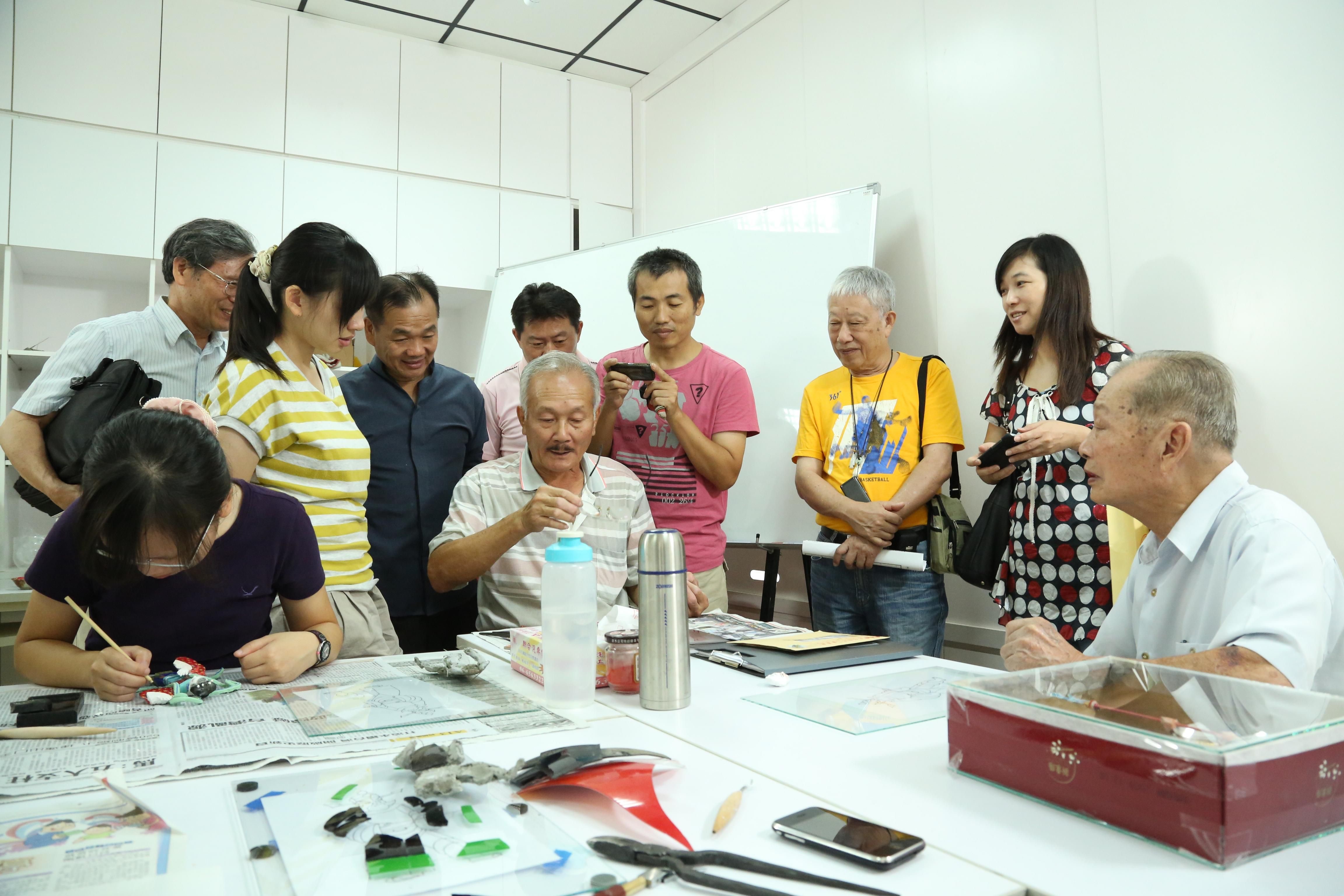 ▲ 呂興貴(王保原的二徒弟,中間講話者)正向學員講解剪黏技巧。記者 沈 薇/報導臺南市文化資產保存技術「剪黏技術」保存者呂興貴藝師