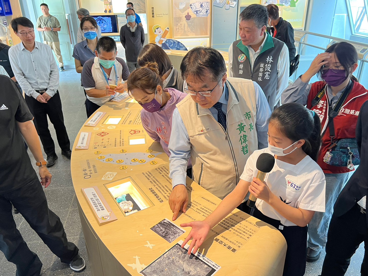 ▲ 永福展示中心導覽。記者 沈 薇/報導「全國首間」結合歷史遺構現地保留展示的校舍就在臺南永福國小!「市定古蹟清代道署遺構展示中心