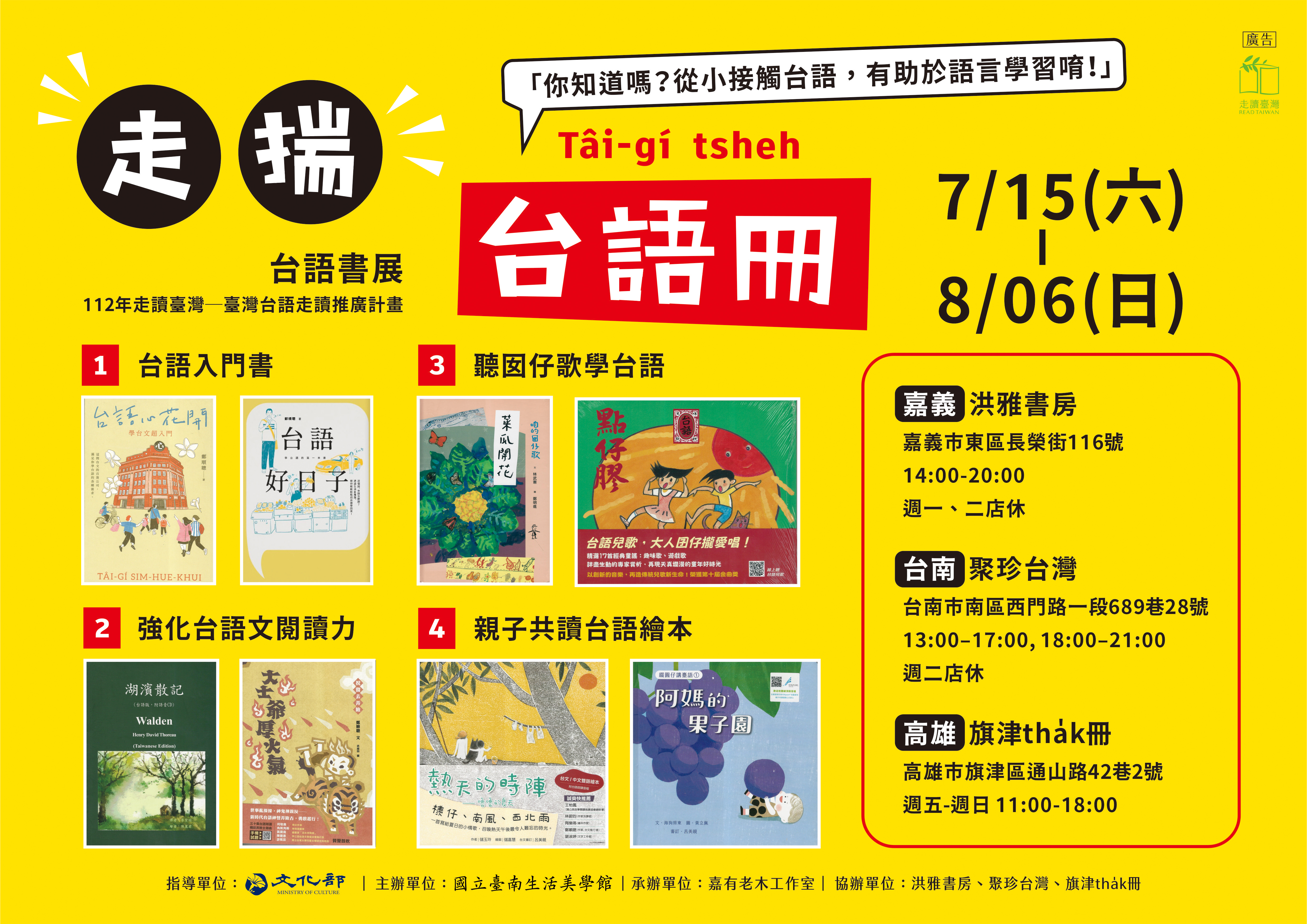 ▲ 「走揣‧台語冊」主題書展文化部所屬國立臺南生活美學館為推廣國家語言及臺灣優良文本,今(112)年度走讀臺灣計畫以「走揣市場‧渡