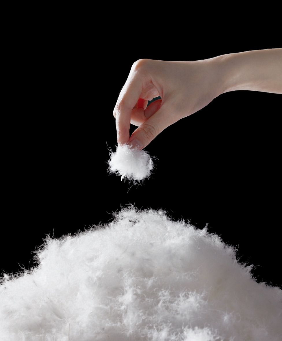 ▲羽絨,為立體球形結構,具有柔軟細絲形成保暖結構,為最輕之天然保暖素材農業部畜產試驗所(以下簡稱畜試所)與台灣區羽毛輸出業同業公會